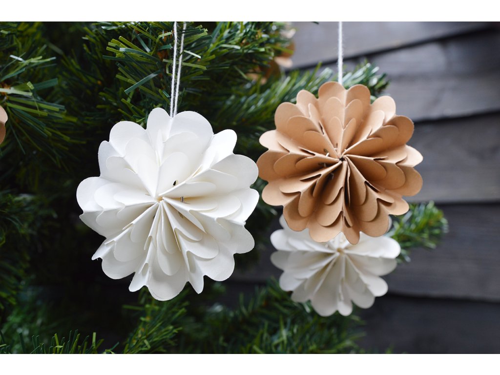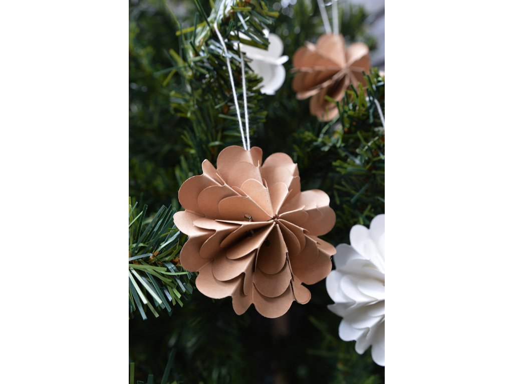Papírové rozetky přinášejí do vašeho domova jemný nádech nostalgie i skandinávské jednoduchosti. Díky svému lehkému papírovému provedení působí vzdušně a elegantně, takže krásně vyniknou na vánočním stromečku, ale stejně tak je můžete zavěsit i na větvičky ve váze a vytvořit tak originální sváteční aranžmá.