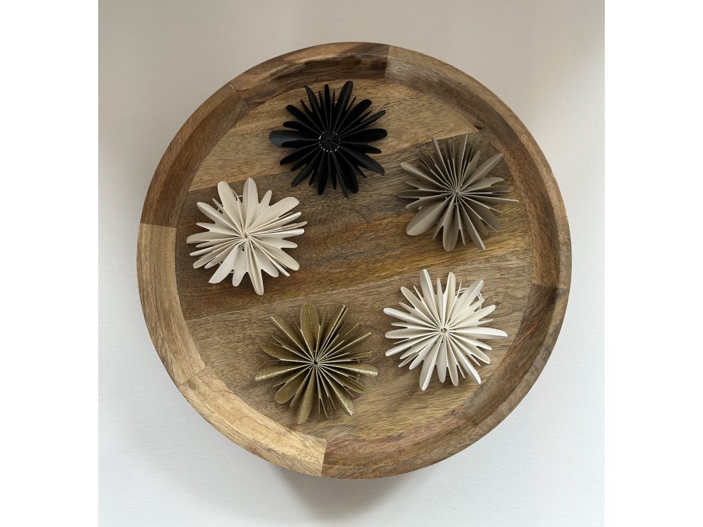 Papírové rozetky přinášejí do vašeho domova jemný nádech nostalgie i skandinávské jednoduchosti. Díky svému lehkému papírovému provedení působí vzdušně a elegantně, takže krásně vyniknou na vánočním stromečku, ale stejně tak je můžete zavěsit i na větvičky ve váze a vytvořit tak originální sváteční aranžmá.
