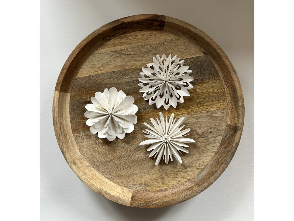 Papírové rozetky přinášejí do vašeho domova jemný nádech nostalgie i skandinávské jednoduchosti. Díky svému lehkému papírovému provedení působí vzdušně a elegantně, takže krásně vyniknou na vánočním stromečku, ale stejně tak je můžete zavěsit i na větvičky ve váze a vytvořit tak originální sváteční aranžmá.