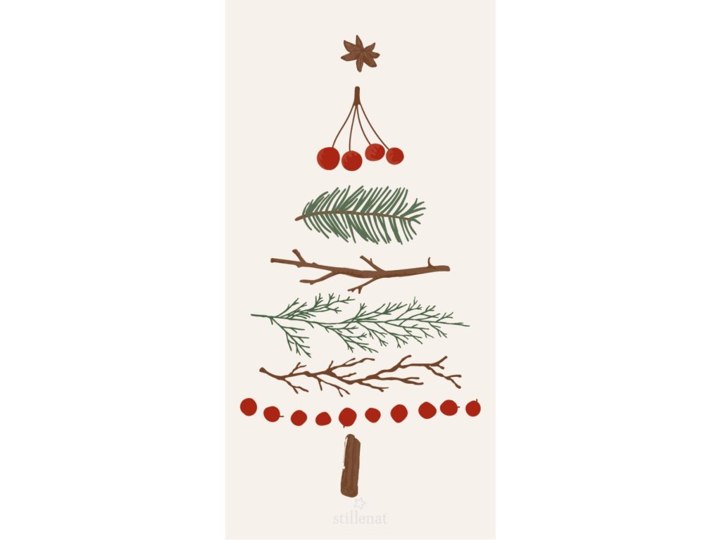 Papírové ubrousky Nordic Tree zachycují to nejkrásnější z přírodních Vánoc – jednoduchost, klid a kouzlo drobných detailů. Stromeček poskládaný z větviček, bobulek, hvězdičky badyánu a kousku skořice působí jako malá pocta zimní přírodě i tradicím severského stylu.