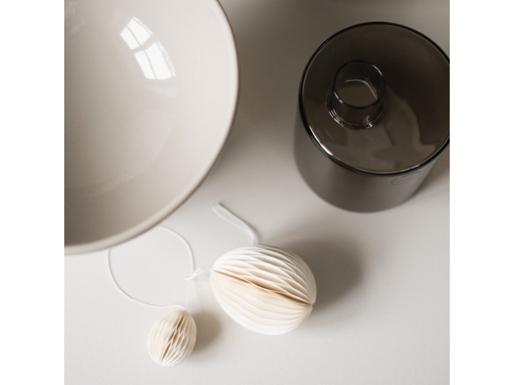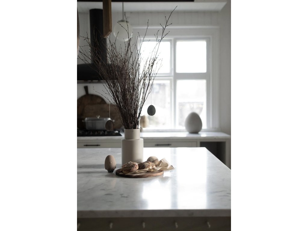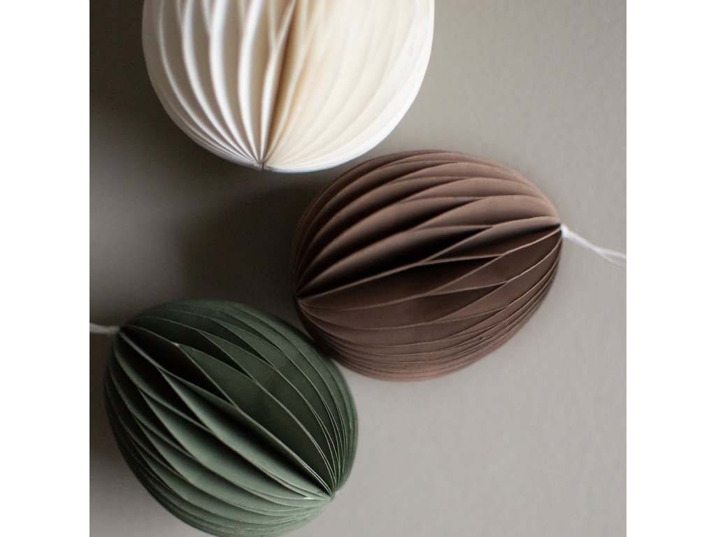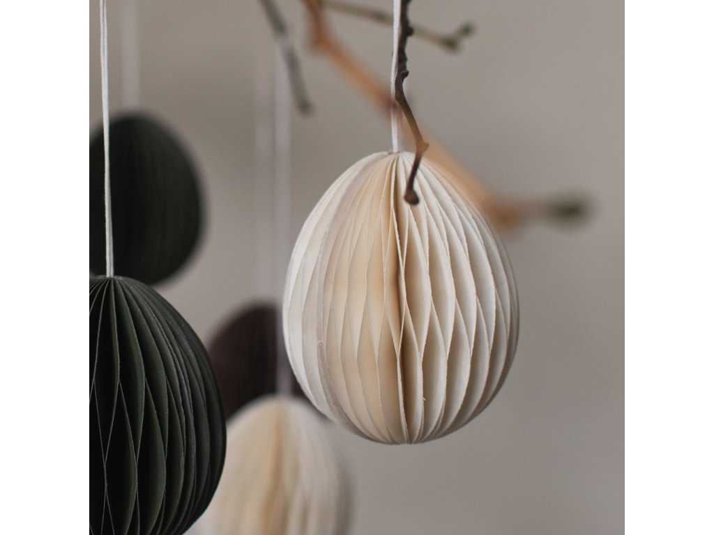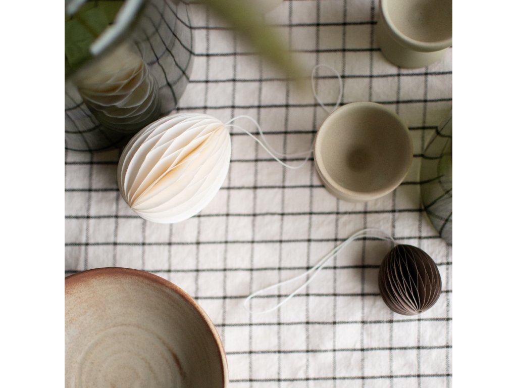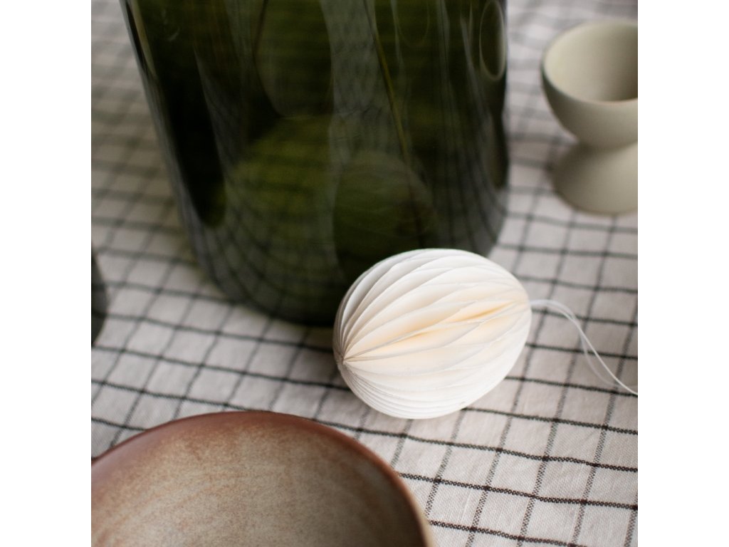 Papírové velikonoční vajíčko Ovoid od švédské značky DBKD je stylová dekorace, která vnese do vašeho domova jemný sváteční nádech. Po rozložení získává působivý 3D efekt a jeho dvě poloviny drží pohromadě díky praktickému magnetu. Skvěle se hodí k zavěšení do okna, na dveře nebo jako součást jarního aranžmá s čerstvými větvičkami.