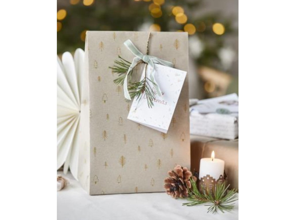 Chcete darovat drobnost, menší předměty nebo nejste zrovna milovník balení dárků? Usnadněte si práci a vložte letos dárečky do stylového papírového sáčku od dánské značky Ib Laursen. Nádherný design zlatých stromečků na kraftovém podkladě potěší jak malé, tak i velké. Doveďte zabalený dárek k dokonalosti a opatřete mu kožený provázek či barevnou stuhu s ručně napsanou jmenovkou a originální dílo pro Vaše milované je hotové. Zabalené dárky zdobené autorskými motivy z dílny Ib Laursen se budou pod vánočním stromkem vyjímat a stanou se tak nedílnou součástí svátečně laděného interiéru.