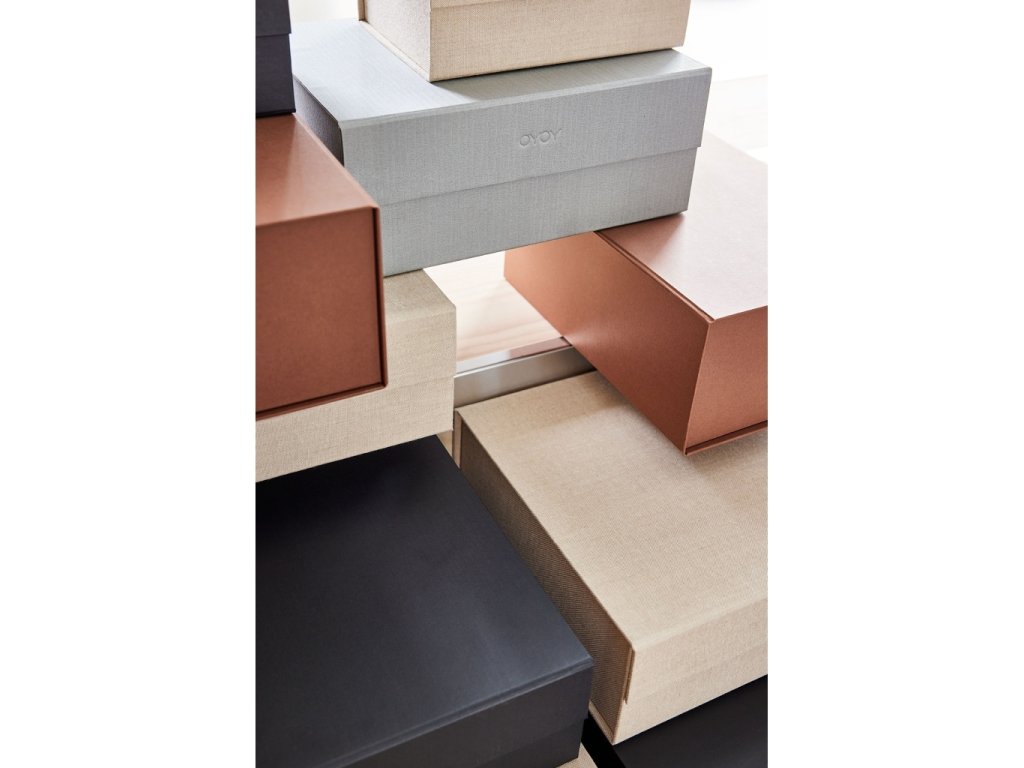 Papírový box Hako značky OYOY nabízí praktické úložné řešení všech vašich nezbytností a to hned v několika velikostech a barevných odstínech. Společnost OYOY se při jejich výrobě inspirovala harmonickou japonskou kulturou a vsadila na vyvážené poměry mezi funkční a estetickou stránkou. Hako byly vyrobené s důrazem na detail a vyznačují se čistými liniemi, elegancí a zkrátka jsou dotažené k dokonalosti. Samozřejmostí je také vytlačený detail loga značky na víku tón v tónu s boxem.