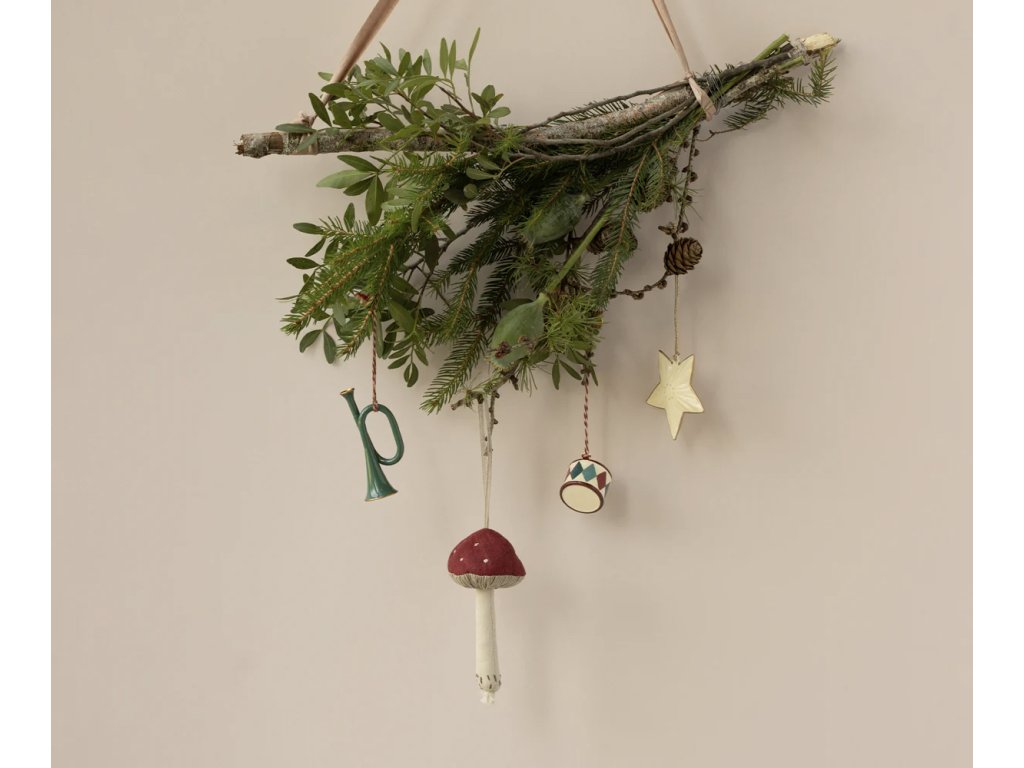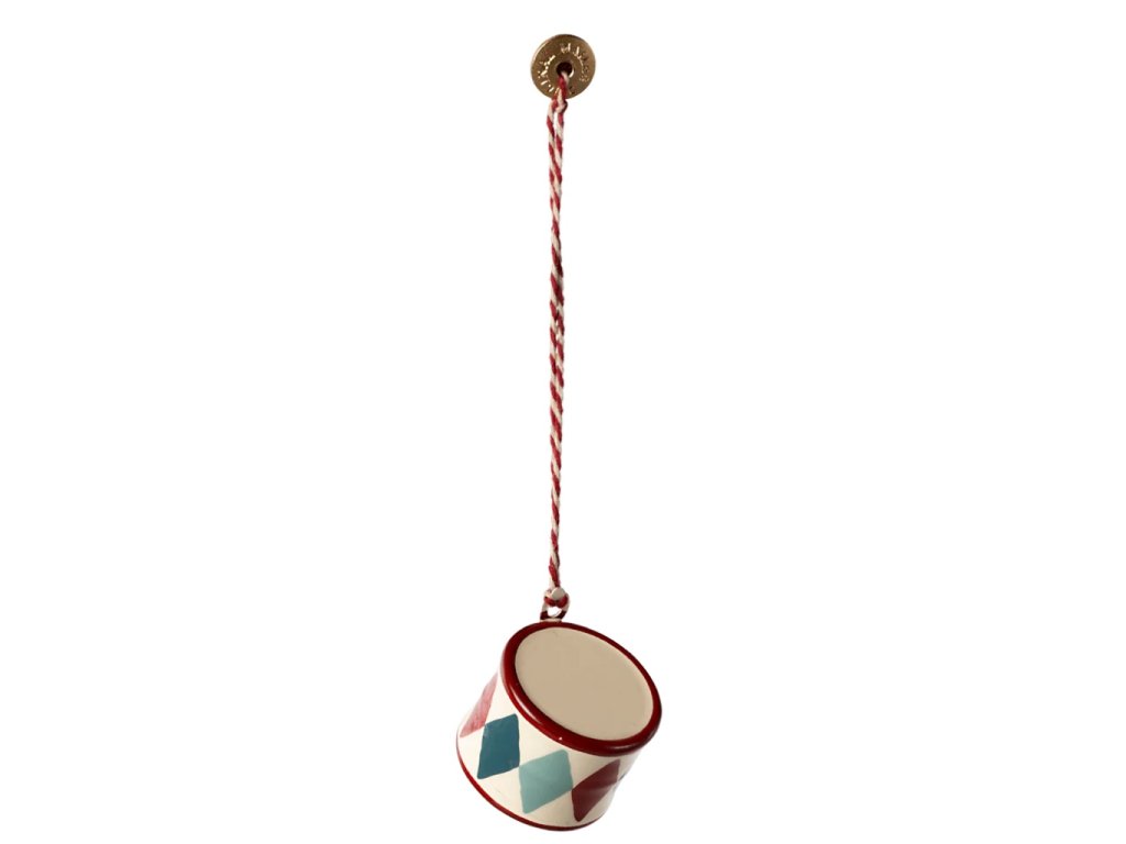 Vánoční kouzlo se často skrývá v maličkostech, a právě takovým drobným, ale půvabným detailem je plechový bubínek od Maileg. Ručně malovaná ozdoba s klasickým vzorem v tónech červené a modré připomíná starodávné hračky, které provázely sváteční čas už celé generace. Díky červenobílému provázku ji snadno zavěsíte na vánoční stromeček, větvičku ve váze nebo adventní věnec.