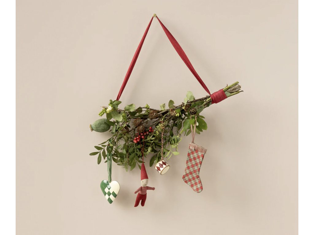 Vánoční kouzlo se často skrývá v maličkostech, a právě takovým drobným, ale půvabným detailem je plechový bubínek od Maileg. Ručně malovaná ozdoba s klasickým vzorem v tónech červené a bílé připomíná starodávné hračky, které provázely sváteční čas už celé generace. Díky červenobílému provázku ji snadno zavěsíte na vánoční stromeček, větvičku ve váze nebo adventní věnec.