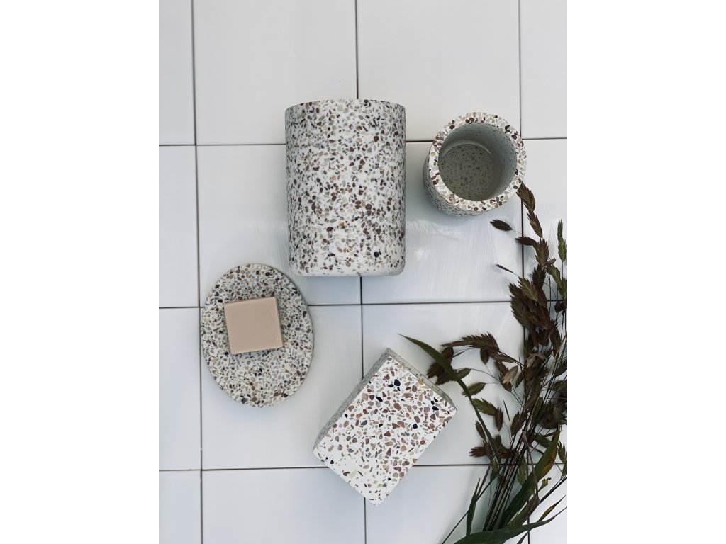 Vdechněte svému domovu kapku elegance díky úžasné teraso mozaice. S malým podnosem od dánské značky HUMDAKIN to bude opravdu hračka. Podnos je vyroben z terasa v tlumených odstínech, jež skvěle korespondují s dřevěným nábytkem či doplňky. Teraso je dnes opět velmi vyhledávaným a moderním materiálem. Podnos bude vypadat báječně jako mýdlenka v koupelně nebo v ložnici jako odkládací prostor pro vaše šperky a hodinky.