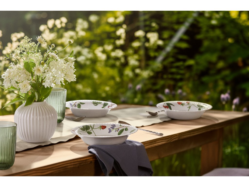 Autorkou motivů je umělkyně Rikke Jacobsen, jejíž precizní akvarelové ilustrace zachycují krásu přírody v každém detailu. Polévkový talíř je součástí nadčasového porcelánového servisu Hammershøi, který navrhl Hans-Christian Bauer a který vychází z bohaté řemeslné tradice značky Kähler. Vychutnejte si své oblíbené letní pokrmy s jemností a elegancí, kterou přináší Hammershøi Summer Berries.