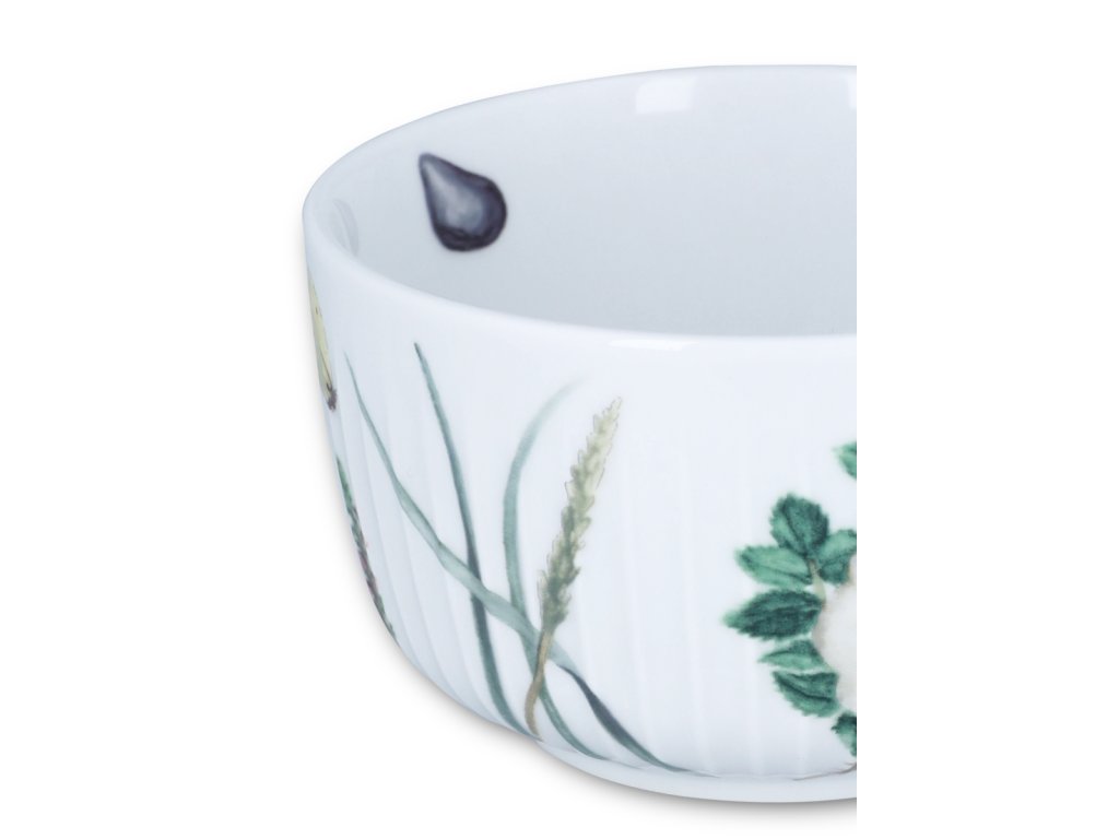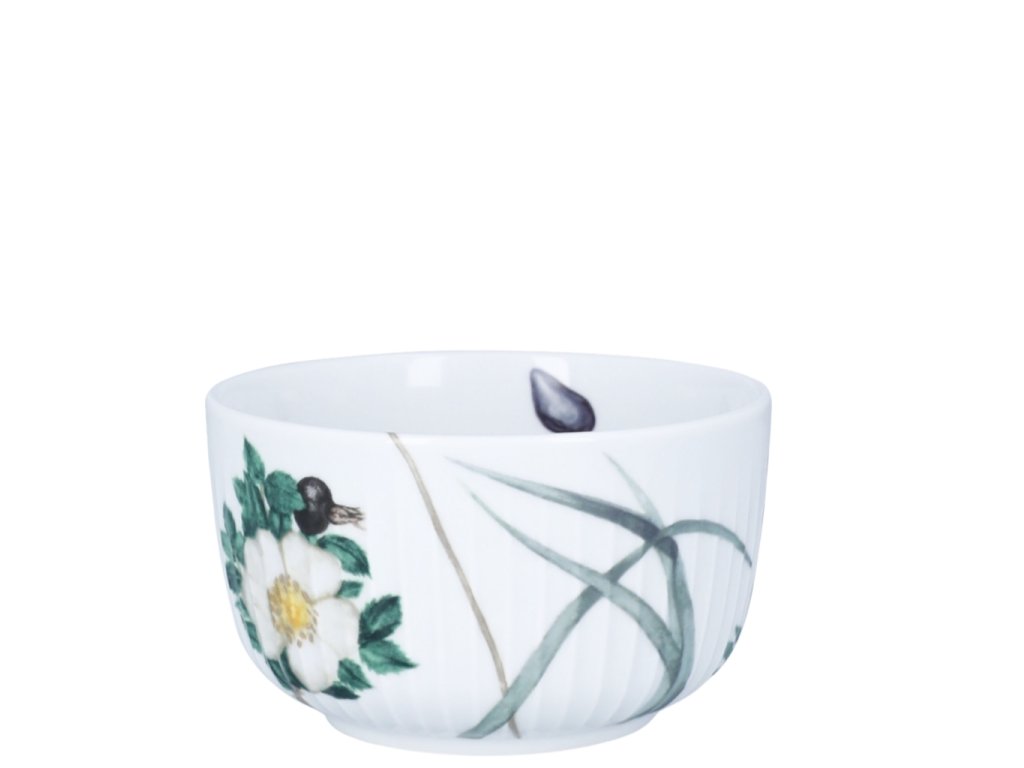 Motiv vytvořila umělkyně Rikke Jacobsen a její kresba krásně vyniká na typickém vroubkovaném povrchu kolekce Hammershøi. Jemné drážky porcelánu navržené designérem Hansem-Christianem Bauerem dodávají misce charakteristickou strukturu a zároveň nechávají ilustrace přirozeně kopírovat její reliéf.