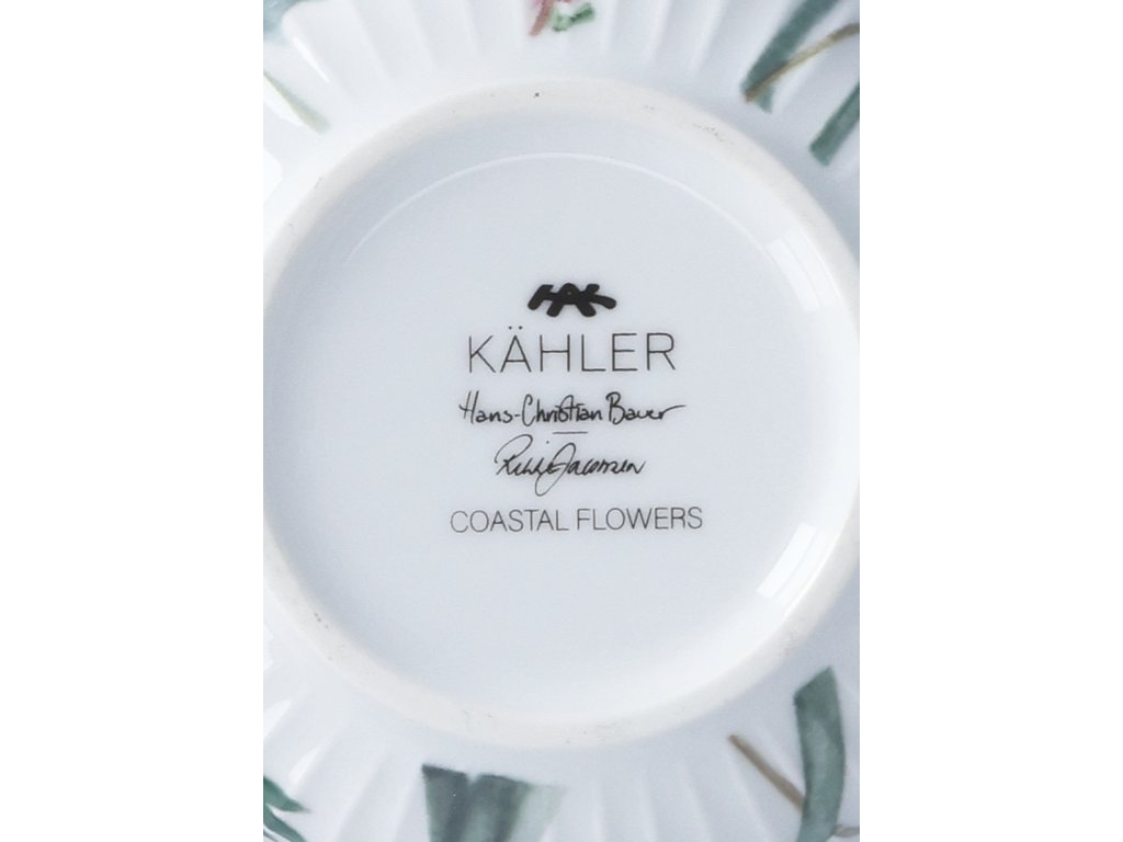 Porcelánová miska Hammershøi Summer Coastal Flower od dánské značky Kähler přináší na stůl poetiku letního pobřeží. Bílý porcelán zdobí akvarelové ilustrace pobřežních rostlin a květů v odstínech zelené, růžové a fialové, které se rozprostírají po okraji misky jako drobná botanická scéna inspirovaná přírodou dánských pláží.