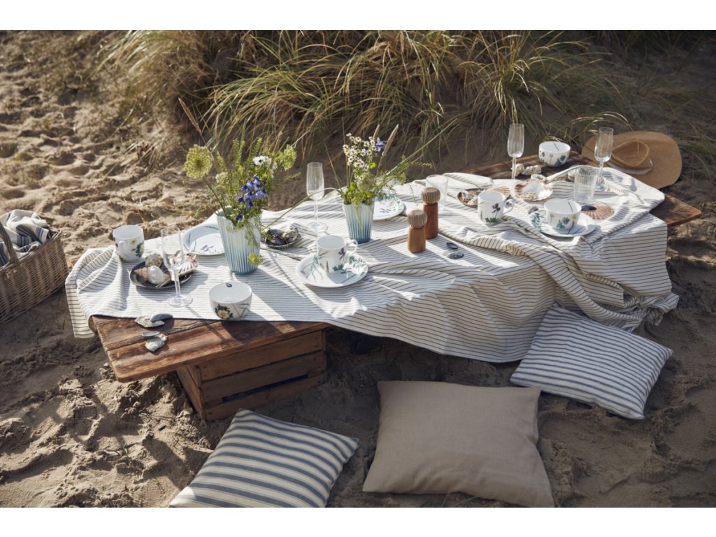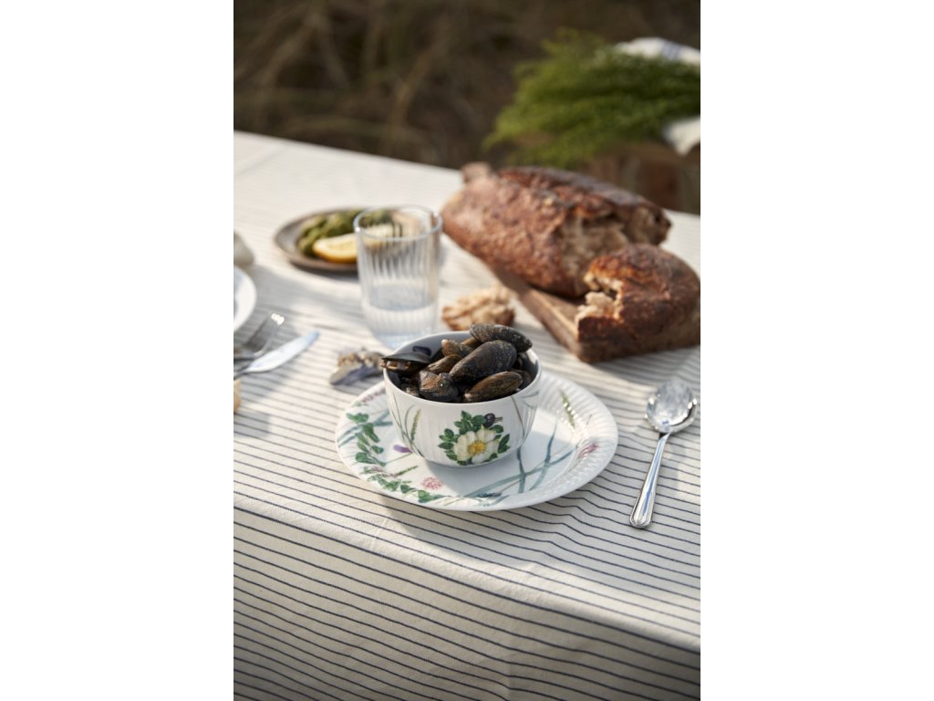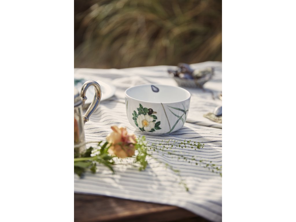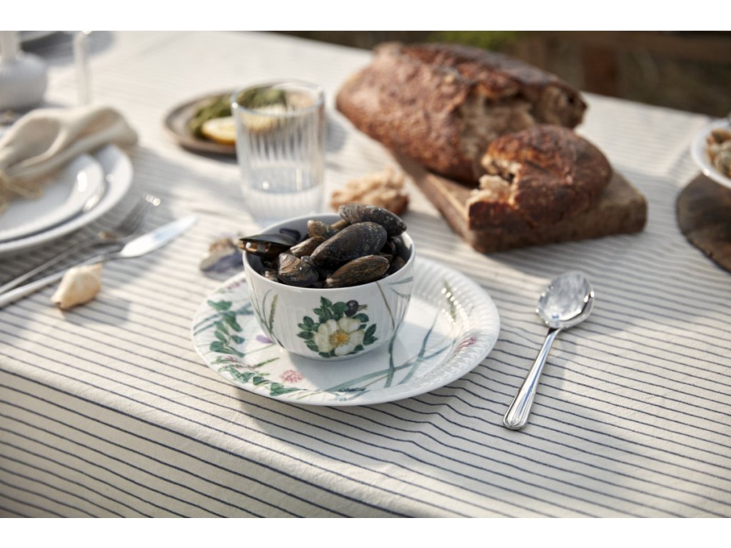 Miska je ideální pro každodenní stolování i letní setkání u stolu. Využijete ji na ranní jogurt s granolou, porci čerstvého ovoce, menší salát nebo třeba na olivy a drobné pochutiny při posezení s přáteli. Krásně vynikne na světlém lněném ubrusu, doplněná sklenicí domácí limonády a jednoduchou vázičkou s lučními květy. Díky nadčasovému vzhledu ji snadno zkombinujete s dalšími kousky z kolekce Hammershøi Summer i s vaším stávajícím servisem.