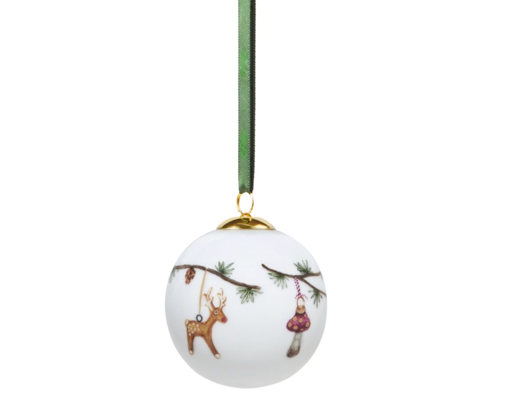 Sváteční kolekce Hammershøi Christmas od Kähler se stala velmi oblíbenou a stojí za ní norský designér Hans-Christian Bauer. Nádherné ilustrace zobrazující skandinávské vánoční tradice pak navrhla umělkyně Rikke Jacobsen. Vánoční baňka z bílého porcelánu zaujme jemnou ilustrací roztomilého jelínka, prasátka s modrou stužkou, houbičky a všudypřítomné cedrové větvičky, které si zamiluje celá rodina. Ozdobte si baňkou vánoční stromeček nebo větvičku. Vyjímat se bude i zavěšená v okně. Porcelánová vánoční baňka Hammershøi Christmas dodá o Vánocích vašemu domovu tu pravou skandinávskou eleganci.