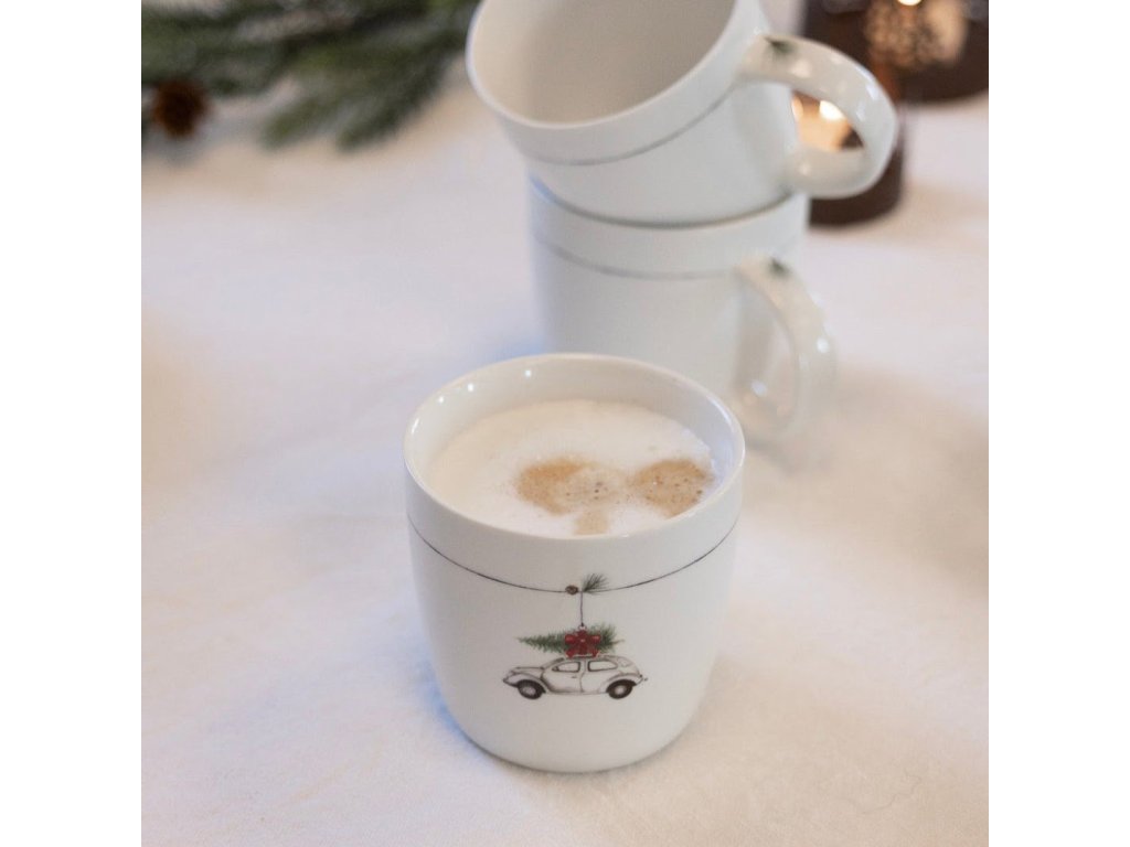 Rozměry hrnečku doplňují jeho oblé linie, které příjemně padnou do dlaně. Motiv malého autíčka v sobě nese nostalgii i radost z drobných zimních okamžiků, cestu pro stromeček, návrat domů, společné zdobení a chvíle, které k Vánocům neodmyslitelně patří. Hrnek Christmas Car dodá vašemu zimnímu stolování hravý, ale jemný vánoční nádech a zpříjemní každý doušek během chladných dnů.