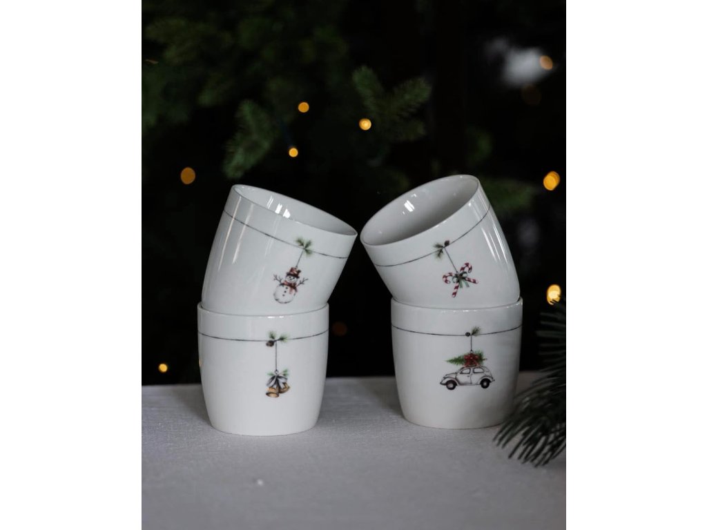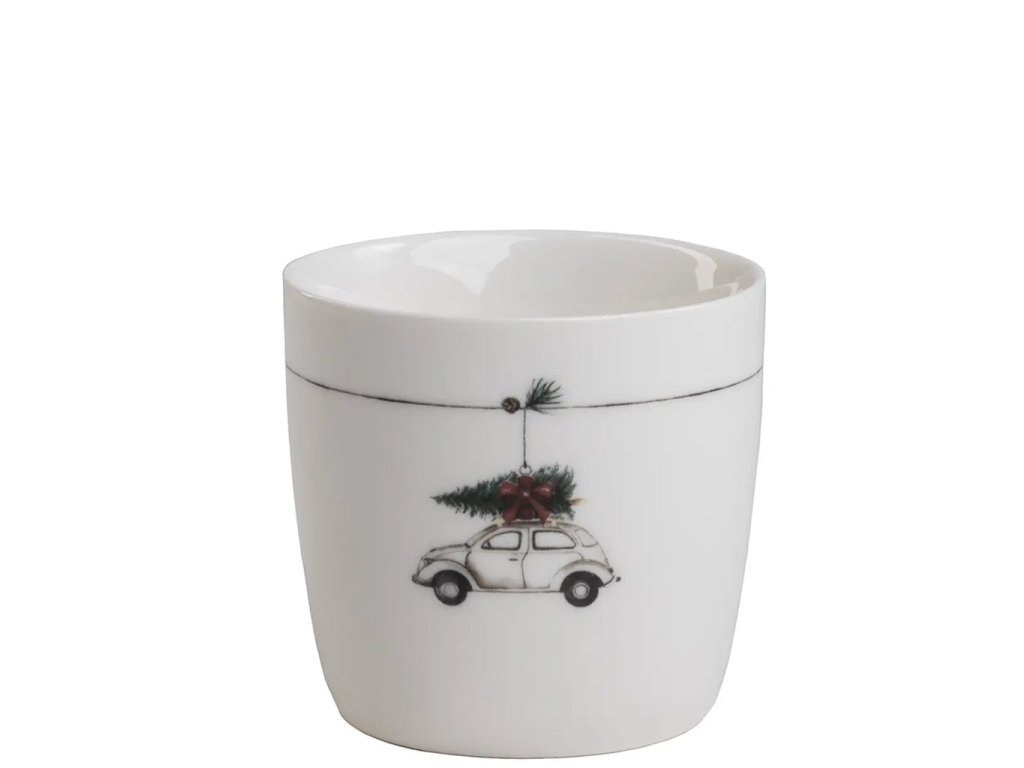 Motiv autíčka s vánočním stromečkem patří k těm nejmilejším zimním symbolům a právě tuto radostnou chvíli zachytila norská umělkyně Bente Lill Endresen ve svých jemných akvarelových ilustracích. Na bílém, ručně vyrobeném porcelánu se objevuje malé autíčko, které si na své střeše veze svěží zelený stromeček převázaný červenou mašlí. Působí to, jako by právě dorazilo domů, aby začala ta pravá předvánoční atmosféra plná světýlek, jehličí a tradic.