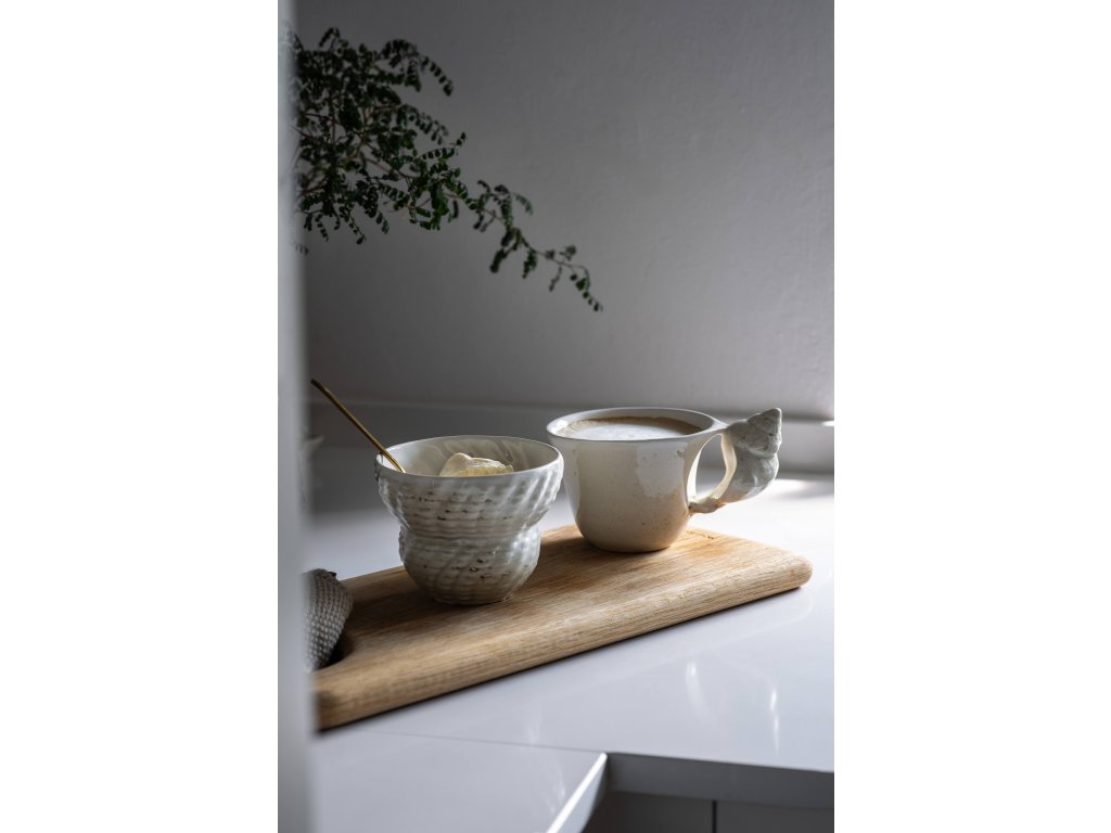 Každý kus je ručně vyráběn v Dánsku z porcelánu a díky tomu je naprostým originálem s jemnými odchylkami v barvě či tvaru. Hrnek má objem 250 ml, takže je ideální na ranní kávu, čaj, horkou čokoládu, ale i na podávání studených nápojů nebo drobných dezertů. Svým nadčasovým designem krásně ladí s ostatními kousky z kolekce Konkylie a stává se součástí každodenních rituálů, které vám připomínají krásu pomalého stolování.