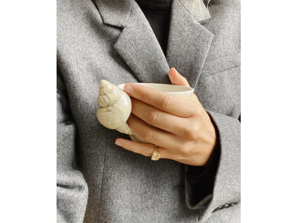 Porcelánový hrnek s ouškem Konkylie, navržený keramičkou Dorte Kristoffersen pro Christina Iversen Studio, je poctou mořským tvarům a severské přírodě. Porcelánový šálek o objemu 250 ml zaujme originálním ouškem ve tvaru mušle, které mu dodává osobitý charakter i jemný nádech hravosti. Každý doušek kávy či čaje se tak stává malým rituálem, při němž se můžete na okamžik zastavit a vychutnat si klid, který značka Christina Iversen do svých produktů vnáší.