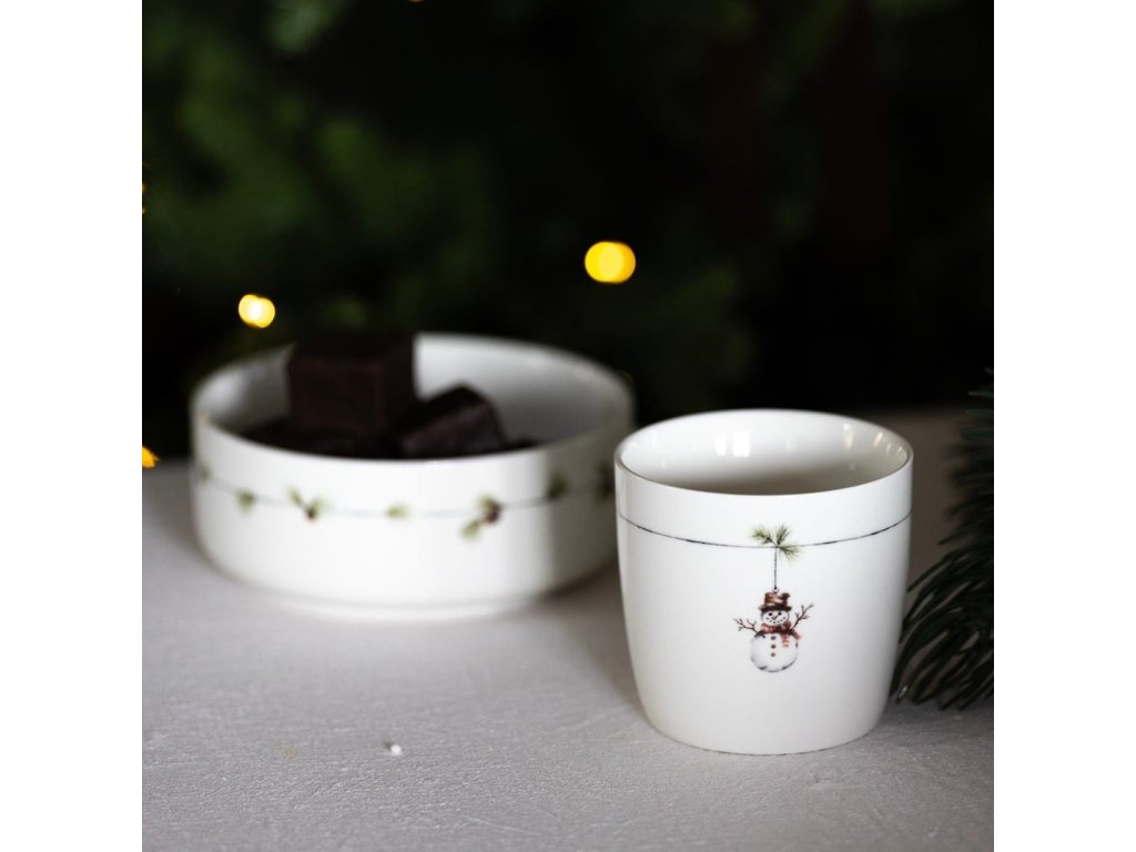 Ilustrace od norské umělkyně Bente Lill Endresen v sobě nesou přesně tu hřejivou nostalgii, kterou máme spojenou s Vánocemi. Na bílém, ručně vyrobeném porcelánu se vyjímá jemná akvarelová kresba sněhuláka zavěšeného pod větvičkou borovice. Milý motiv, který jako by nás na okamžik vrátil do dětských zim, kdy svět voněl jehličím, cukrovím a očekáváním svátečních dnů. Hrnek působí čistě a dodá každému doušku čaje, kávy nebo horkého kakaa pocit útulna, po kterém v zimě toužíme.