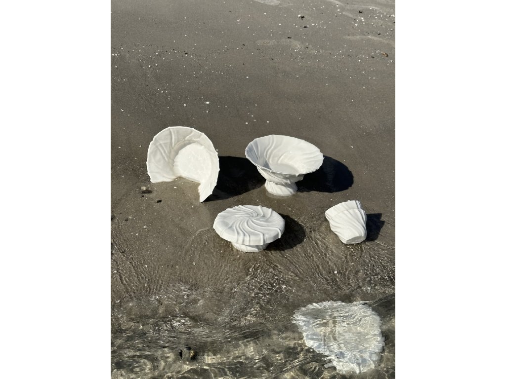 Porcelánový podnos na dort Tides je poctou mořskému pobřeží, kde příliv a odliv neustále mění krajinu i rytmus života. Tento elegantní kousek vznikl v dánském Åarhusu z nejjemnější bílé porcelánové hlíny. Povrch podnosu je inspirován zvlněným pískem mořského dna po odlivu – přirozeným obrazcem, který vytvořila sama příroda. Jeho tvar i výrazné plastické linie zachycují pohyb, ticho i sílu moře.