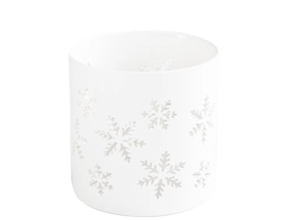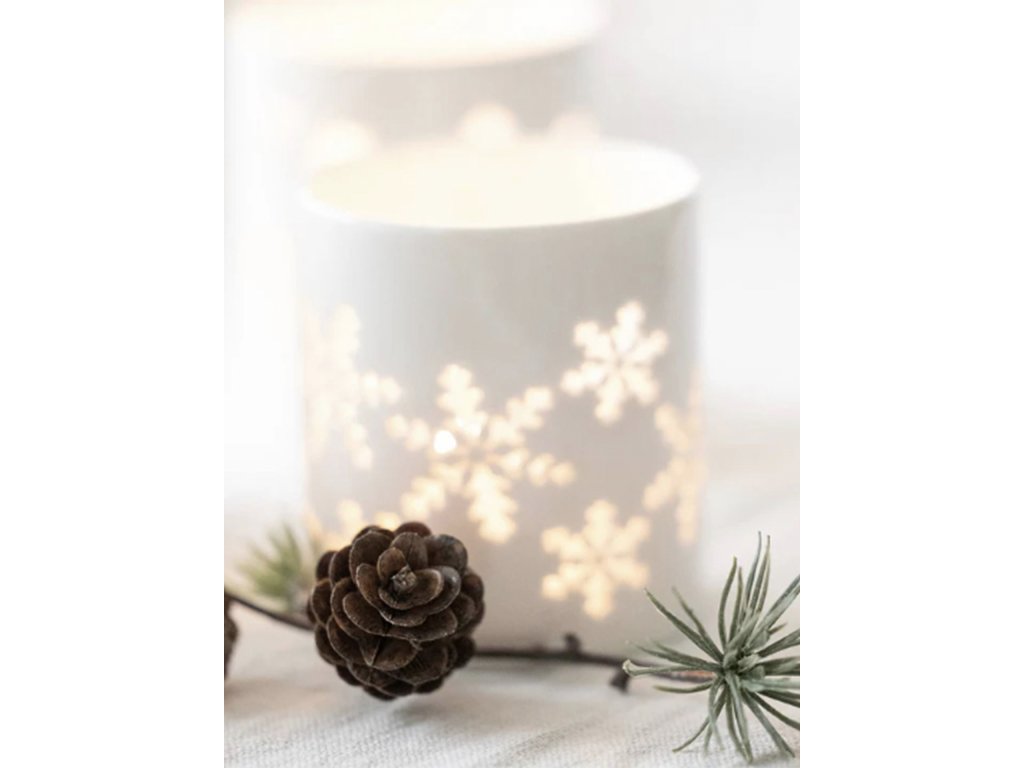 Porcelánový svícen Christmas Snowflake přináší do interiéru tu nejkrásnější podstatu zimy, tichý tanec vloček, jemné světlo a klid, který cítíme při pohledu na zasněženou krajinu. Pečlivě perforované sněhové vločky vytvářejí na svícnu působivý motiv, který se rozzáří teplým světlem čajové svíčky a promění váš domov v útulné zimní zákoutí. Jakmile se plamínek rozsvítí, průřezy vloček začnou jemně zářit a prostor naplní měkkým, hřejivým třpytem.