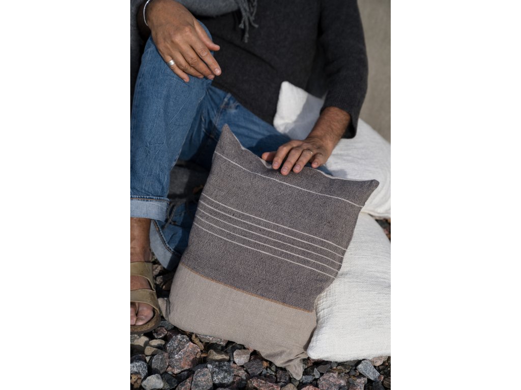 Povlak na polštář Halflinen Grey z příjemné směsi 50 % lnu a 50 % bavlny působí přirozeně, klidně a zároveň velmi elegantně. Kombinace bavlněné měkkosti a lněné struktury vytváří materiál, který je na dotek jemný, přesto si zachovává typickou přírodní kresbu a rustikální charakter. Šedý základ doplňují béžové pruhy a decentní proužky v bílém odstínu, díky nimž se polštář snadno kombinuje s dalšími textiliemi – ať už lněnými, vlněnými nebo čistě bavlněnými. Skvěle vypadá na pohovce, posteli i křesle, kde se stává nejen dekorativním prvkem, ale i výzvou k odpočinku.