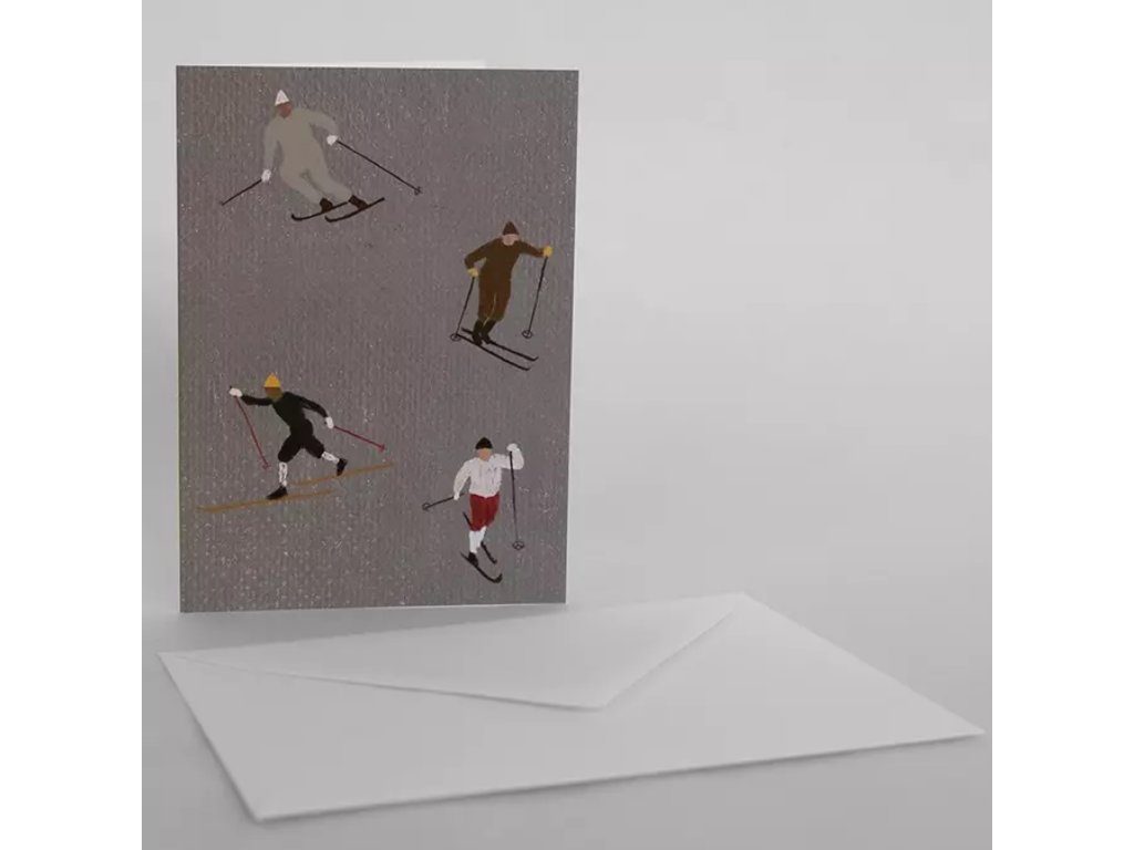 Přání s potiskem lyžařů a běžkařů vychází z inspirace skandinávskou zimou. Uvnitř kartičky je prostor pro osobní poznámku. Pošlete originální papírový pozdrav plný zimní atmosféry a stylového lyžování, a připomeňte tak svým přátelům kouzlo zimních radovánek.