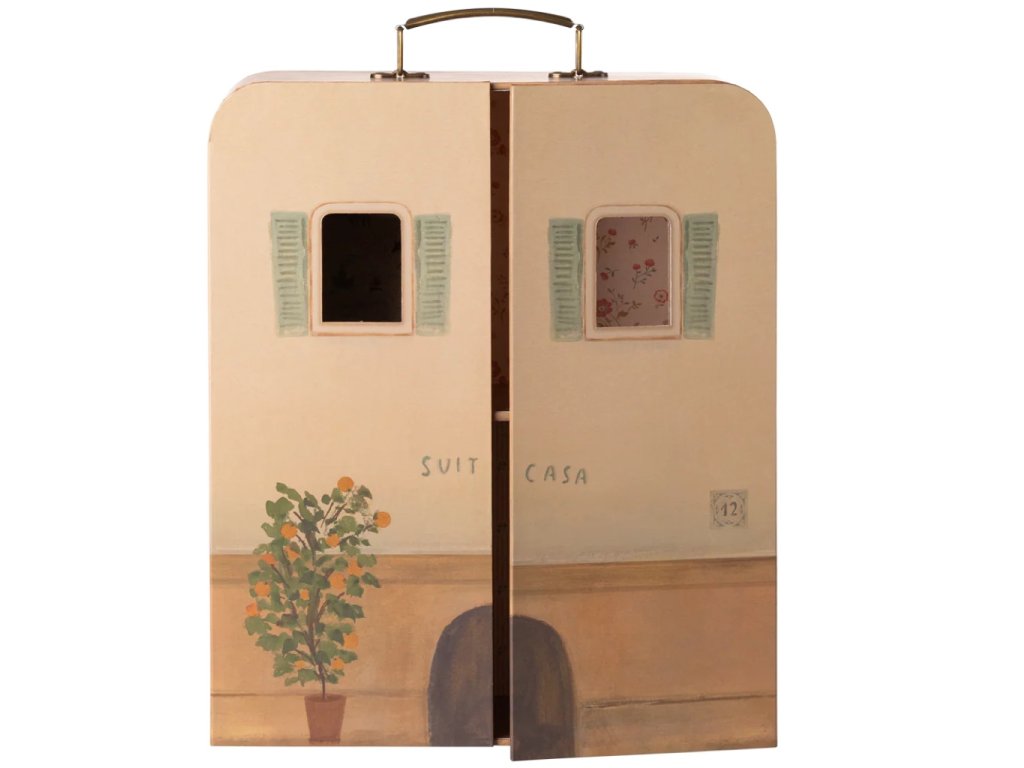 Když hra skončí, domeček se jednoduše zavře jako kufřík a díky praktické kovové rukojeti ho mohou děti přenášet po domě nebo ho vzít na cesty s sebou. SuitCasa tak spojuje krásu, funkčnost i kreativní hru v jednom malém, ale do detailu promyšleném celku. Je to přenosný domov, který udělá radost nejen dětem, ale i jejich malým Maileg přátelům.