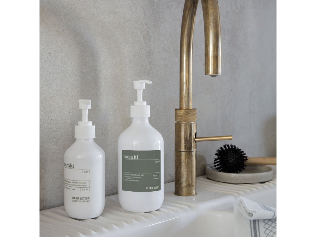Meraki je dánská značka, která v sobě spojuje krásu jednoduchosti, čistotu přírodních ingrediencí a smysl pro detail. Vznikla z touhy vytvořit kosmetiku a doplňky do koupelny, které budou nejen účinné a šetrné k pokožce, ale zároveň i estetické – natolik, že se stanou přirozenou součástí interiéru.