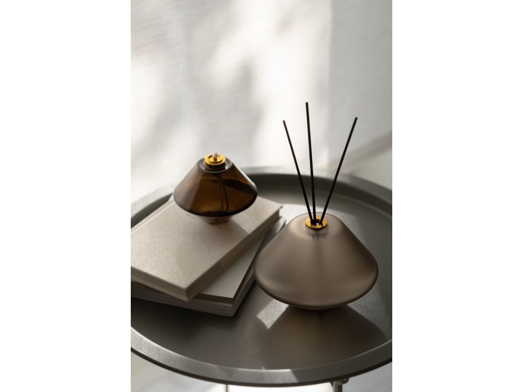 Aki Oil Lamp je projekt malé nezávislé italské značky, která se zaměřuje na výrobu malých olejových lamp. Lampy AKI jsou ústně foukané z kvalitního českého skla a cílem tohoto projektu je posílit vztah mezi vnějším světem a vlastním JÁ. Skleněné olejové lampy spojují krásu, funkčnost a dokonalý relaxační prožitek. Jejich design a použité materiály obstojí napříč trendům po dlouhé roky. AKI olejové lampy se nyní nově dají využít jako vonný difuzér nebo váza pro živé květy. Postačí odšroubovat mosazné víčko na knot, na lampě pak zůstane pouze ozdobné zlaté kolečko, do kterého můžete vložit dřevěné tyčinky a přidat oblíbenou vůni, popřípadě jen čerstvou vodu a natrhané květy. Naplňte lampu jednou z opojných vůní, přidejte dřevěné tyčinky a proměňte ji v luxusní vonný difuzér.