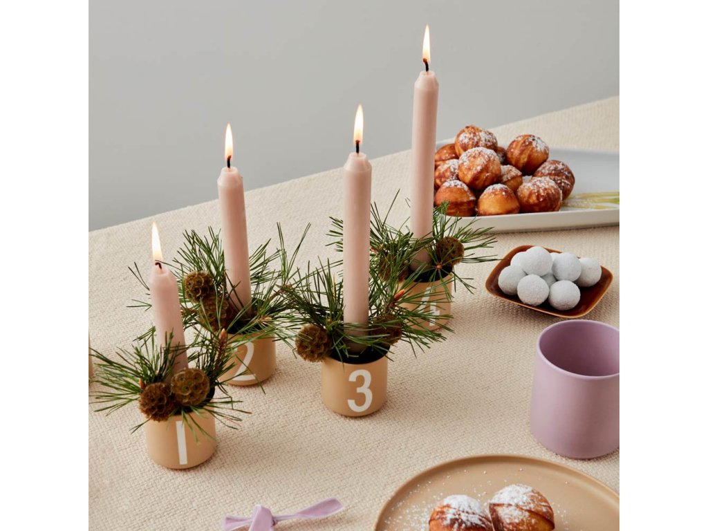 Proměňte ocelovými držáky svíček šálky na espresso v neobyčejný svícen, který se bude hodit zejména během Adventu. V horní části držáků můžete vidět tři malé otvory, kterými lze provléknout borovicové větvičky a dodat tak šálkům sváteční nádech. Svícen je možné použít i během celého roku, stačí jen obměnit vánoční styling.