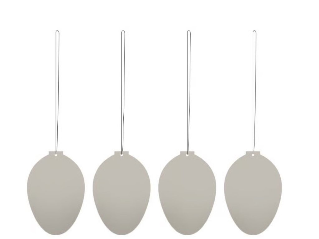 Sada kovových ozdob v podobě vajíčka od značky Cooee Design je stylová dekorace, která vnese do domova lehkost a hravost. V balení najdete čtyři kusy závěsných ozdob vyrobených z oceli s kvalitním práškovaným nástřikem, který vytváří hladký, matný povrch. Každá ozdoba je opatřena jemnou šňůrkou pro snadné zavěšení.