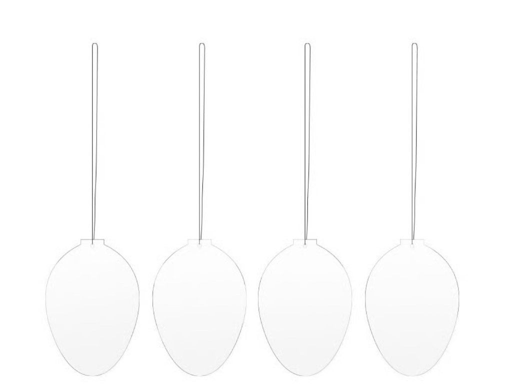 Sada kovových ozdob v podobě vajíčka od značky Cooee Design je stylová dekorace, která vnese do domova lehkost a hravost. V balení najdete čtyři kusy závěsných ozdob vyrobených z oceli s kvalitním práškovaným nástřikem, který vytváří hladký, matný povrch. Každá ozdoba je opatřena jemnou šňůrkou pro snadné zavěšení.