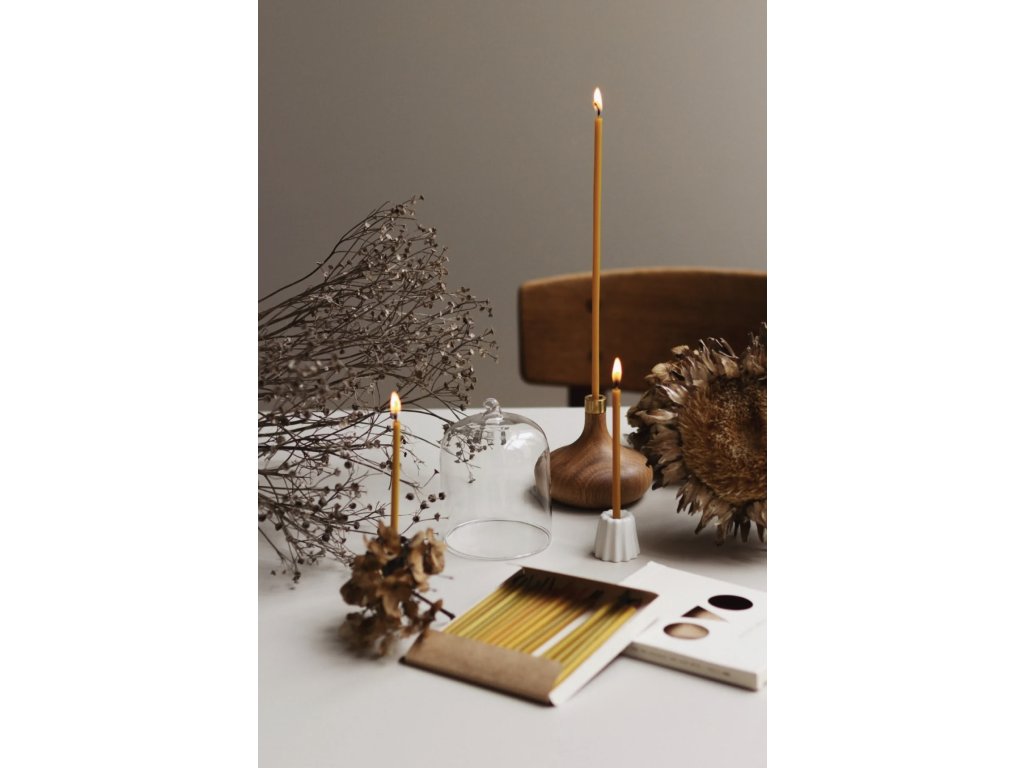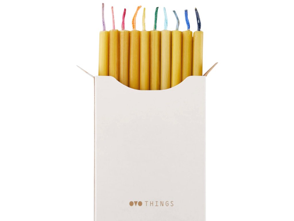 Svíčky sympatické litevské značky OVO Things jsou vyráběné ručně přímo v Litvě ze 100% včelího vosku od lokálních farmářů. Mají čisté, netoxické složení bez přidaných barviv a parfemace a jsou skvělou volbou pro každého, komu záleží na přírodních alternativách k běžným parafínovým svíčkám. Každá svíčka má 100% bavlněný knot a je navržena s důrazem na detail i funkčnost – s průměrem 5 mm a délkou 250 mm pasují do všech svícnů od OVO Things. V balení najdete 10 štíhlých svíček s barevně laděnými knoty, které potěší oko a dodají každé slavnostní chvíli nádech radosti.