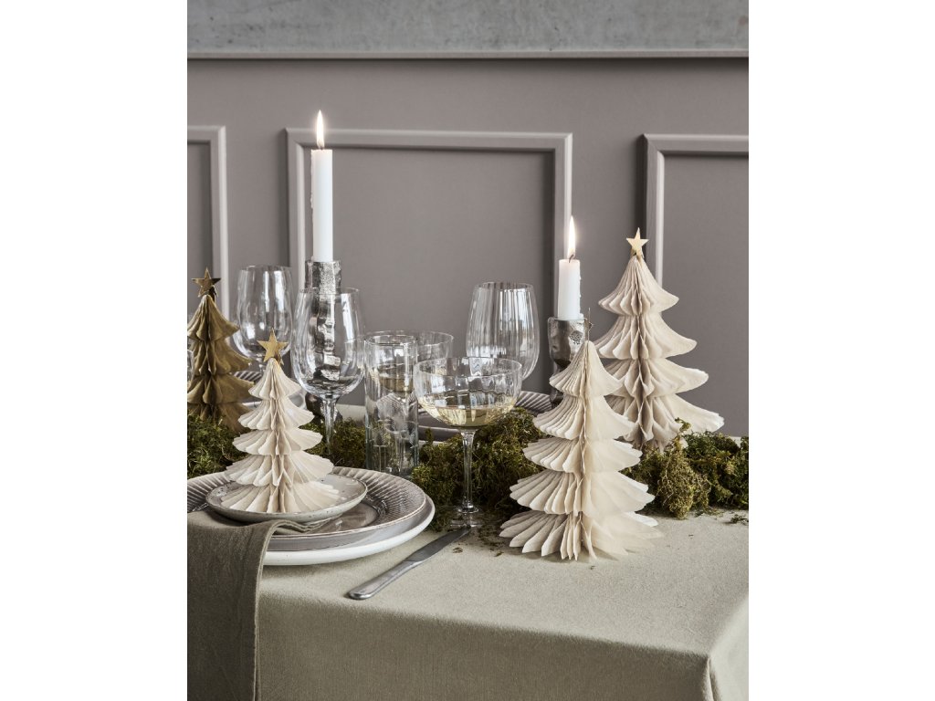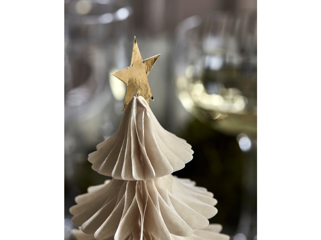 Dodejte svým Vánocům jemný třpyt a útulnou atmosféru s papírovými stromečky Yvory od dánské značky House Doctor. Tyto ručně vyrobené dekorace v krémovém odstínu působí hravě i elegantně zároveň. Každý stromek je zdobený zlatou hvězdičkou na vrcholu a díky harmonikové konstrukci se snadno rozloží do dokonalého tvaru. V sadě najdete tři velikosti, které můžete naaranžovat pohromadě pro působivý efekt, nebo je rozptýlit po místnosti a dodat tak každému koutu domova nádech svátečního kouzla.