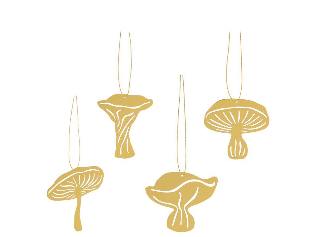 COOEE design si pro vás připravil velký výběr mosazných ozdob pro jakoukoliv příležitost i roční období. Sada obsahuje 4 ks mosazných ozdob, které znázorňují houby. Jejich zlatá barva se bude hodit nejen pro váš vánočně laděný interiér. Kombinací hned několik motivů dohromady vytvoříte atraktivní dekoraci, která zanechá dojem. Umístěte ozdoby na větvičky ve váze, připojte je k zabalenému dárečku či s nimi doplňte látkové ubrousky při štědrovečerní večeři.