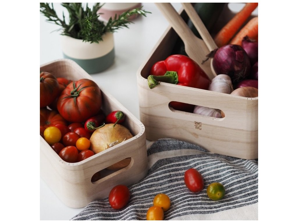RIG-TIG znamená ve volném překladu "tak, jak má být". Filozofií této značky je, že všechny produkty musí být funkční, na pohled krásné a zároveň šetrné k přírodě. Za značkou stojí dánští a mezinárodní designéři, kteří usilují o to být číslem jedna pro zákazníky. RIG-TIG se pyšní kvalitními a designovými produkty do kuchyně, které dělají život jednodušší, zábavnější a jako bonus za dostupné ceny. Úložné boxy SAVE-IT jsou ideální pro organizaci a udržování pořádku. Tento set pěti boxů se vyrábí ze speciálního dřeva Paulownia, které je lehké, ale zároveň pevné, takže manipulace s nimi bude snadná. Jejich využití může být opravdu široké. Pomohou vám v organizaci ve skříních a šuplících, ale také v kuchyni k uchování sypkých potravin, ovoce, zeleniny, koření nebo olejů.