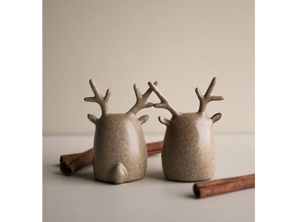 Set keramických dekorací Deer Twins od DBKD je drobný zimní detail, který dokáže během okamžiku zútulnit každý kout domova. Dva malí sobíci s parůžky, vysocí 11 cm, mají matný povrch a příjemný béžovohnědý odstín, díky kterému působí přirozeně a klidně. Jejich jednoduchý, organický tvar působí dojmem ručního modelování.