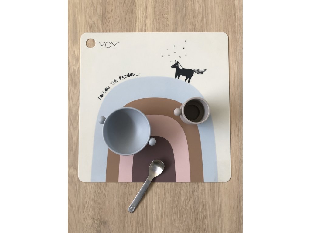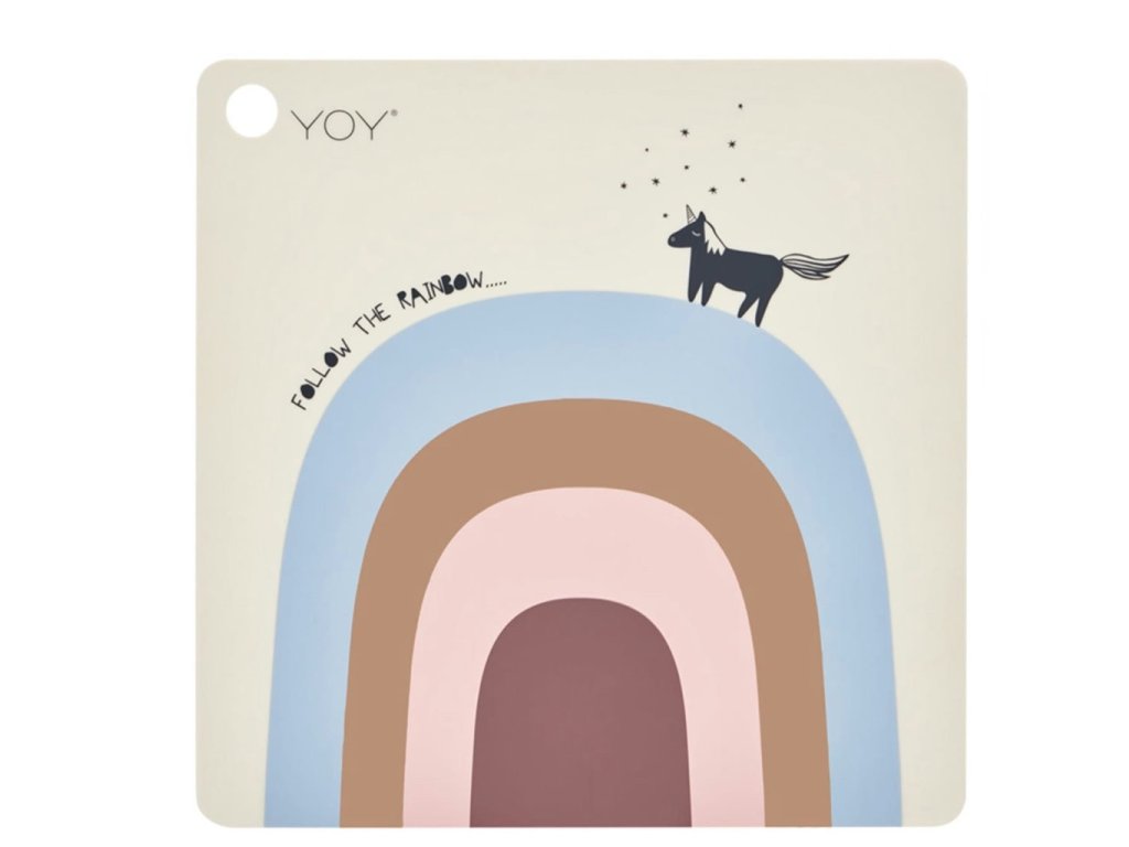 Vneste do svého domova hravost a styl s prostíráním Follow The Rainbow od oblíbené dánské značky OYOY. Silikonové prostírání je nejen praktické, ale také roztomilé a inspirativní díky svému kouzelnému designu. Na jeho čtvercovém povrchu se usmívá pastelová duha a veselý jednorožec – motiv, který potěší především děti, ale okouzlí i všechny milovníky hravých interiérových doplňků.