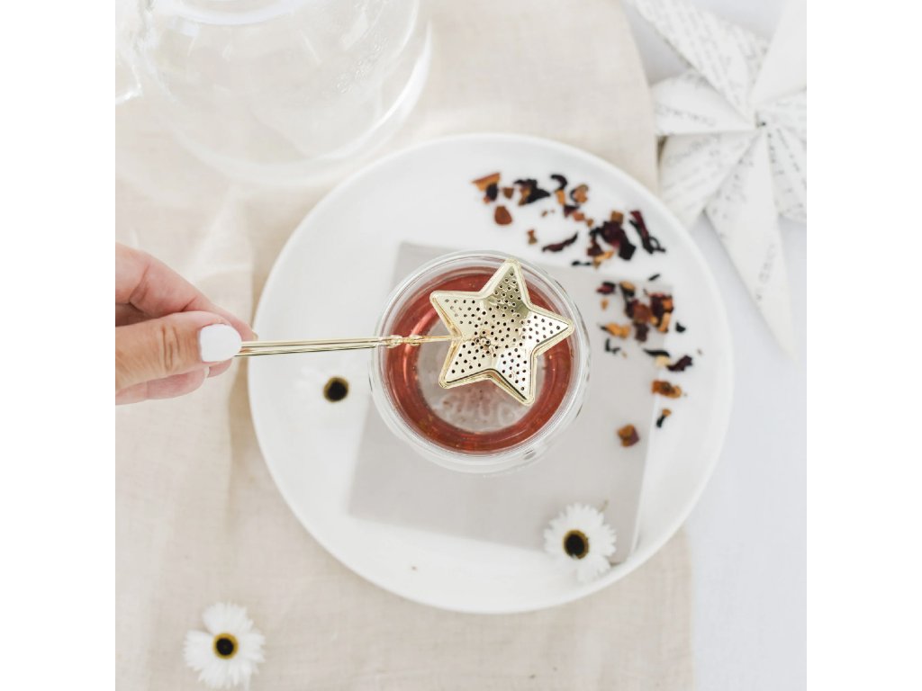 Lesklý kovový povrch dodává sítku jemný nádech luxusu, zatímco tvar hvězdy připomíná klidné zimní večery a chvíle odpočinku. Je ideálním společníkem pro každý typ sypaného čaje od aromatických ovocných směsí až po klasické černé či bylinné čaje.