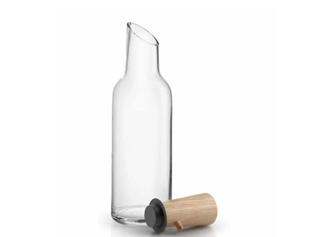 Za skleněnou karafou Wood Stopper od EVA SOLO se skrývá severský design s kapkou elegance. Karafa Wood Stopper je vyrobena z borosilikátového skla s designovou vzduchotěsnou zátkou a zdobí ji nápadité zkosené hrdlo. Minimalistická zátka z dubového dřeva je opatřena silikonovým těsněním, které zajistí, že voda uvnitř karafy nebude nasávat pachy z jiných potravin v lednici. Karafa byla přesně navržena tak, aby svojí velikostí a tvarem zapadla do dveří chladničky. Dodejte vašemu stolování sofistikovanost a styl.