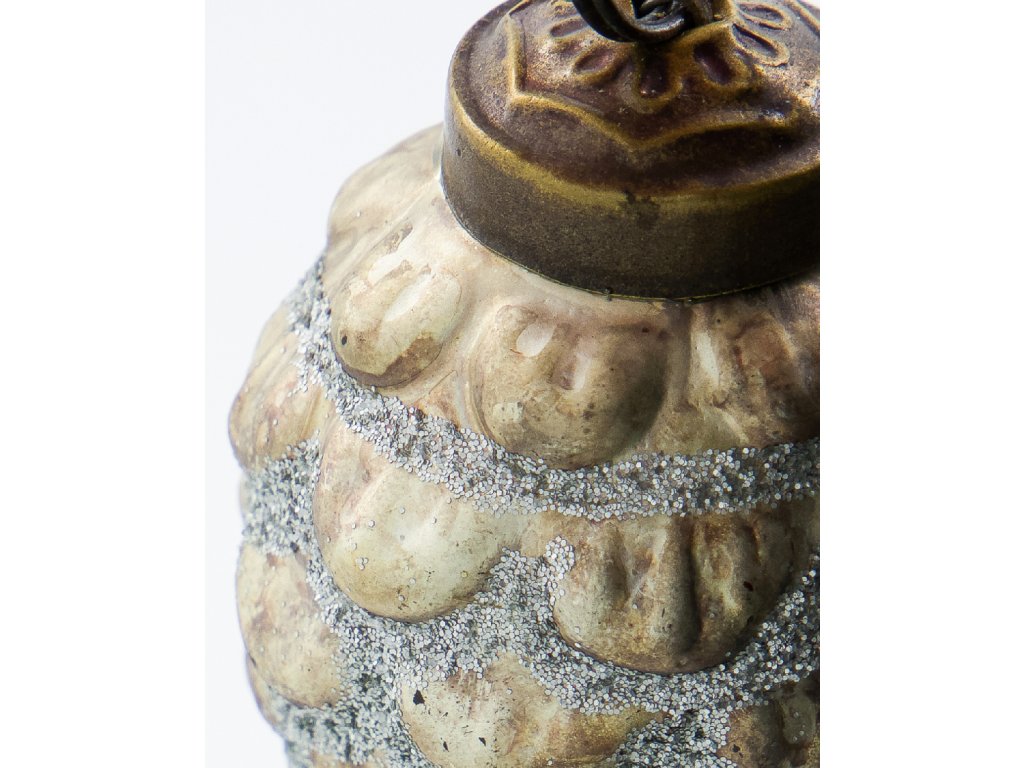 Díky své subtilní velikosti je ozdoba dokonalá k zavěšení na vánoční stromeček, kde odráží světlo svíček i žároviček a přidává mu jemný třpyt. Stejně krásně ale vynikne i jako dekorativní detail ve věnci, v zimní girlandě nebo jednoduše naaranžovaná v misce spolu s dalšími ozdobami a přírodními prvky, jako jsou šišky nebo větvičky jehličí. Kovová hlavička s mosaznou patinou dodává ozdobě autentický vintage vzhled a zároveň zajišťuje snadné zavěšení.