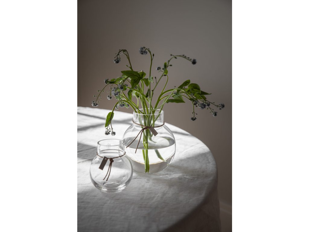 Elegantní skleněná váza od švédské značky ERNSTvás zaručeně dostane svým dokonalým tvarem. Vázu v čirém provedení zdobí kožená šňůrka se stříbrným plíškem, na kterém objevíte logo ERNST. Tento jednoduchý detail dělá z tohoto designového kousku nádhernou dekoraci pro váš domov. Promyšlené linie vázy dají skvěle vyniknout sušeným květinám i čerstvým květům. Využijete ji po celý rok a slušet jí to bude opravdu všude.