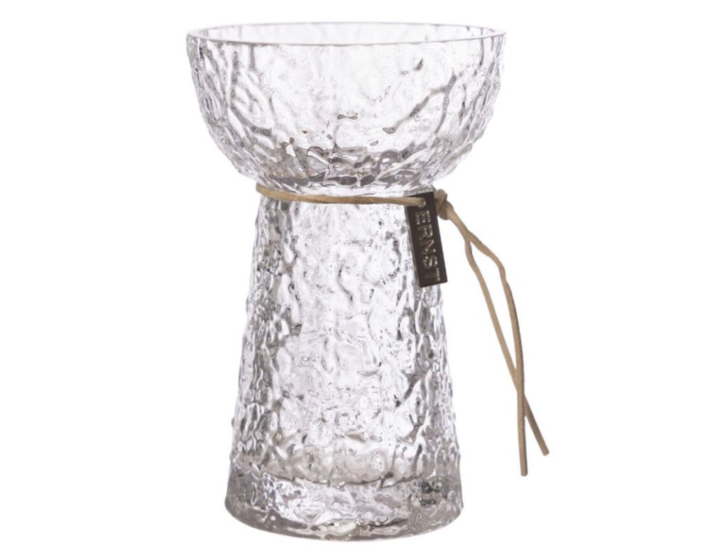 Tento tvar je ideální pro menší cibuloviny, jako jsou hyacinty, amarylisy či narcisy, které v ní mohou přirozeně růst a rozkvétat. Vázu můžete využít i velmi prakticky – na klíčení avokádových pecek nebo zakořeňování řízků pokojových rostlin, díky čemuž se stane krásným i funkčním doplňkem vašeho domova.