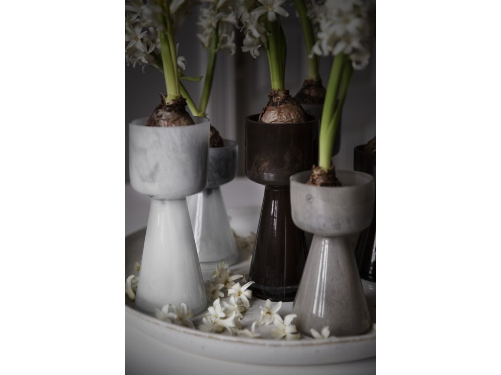 Skleněná váza Lökvas pro hyacinty je nejen stylovým prvkem pro zkrášlení domova, ale také praktickým řešením pro tyto půvabné květiny. Její štíhlý design a poloprůhledné sklo umožňují plně vyniknout kráse rozkvetlého hyacintu. Váza má speciálně navrženou misku zajišťující optimální podmínky pro růst cibulky. Je dostatečně hluboká, proto se není třeba obávat vypadnutí rostliny.