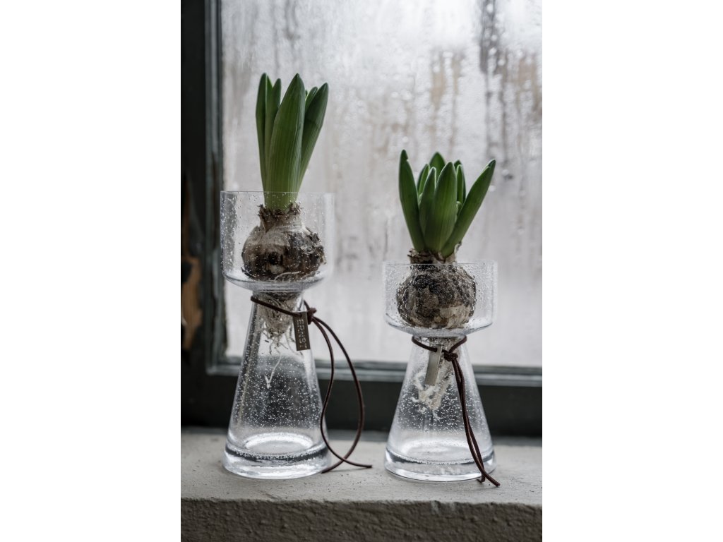 Skleněná váza Lökvas od švédské značky ERNST s jemným designem vzduchových bublinek v sobě spojuje čistotu skandinávského stylu a přirozenou krásu ruční práce. Je navržena tak, aby poskytovala ideální prostředí pro pěstování cibulovin – hyacintů, tulipánů, narcisů nebo drobných krokusů. Díky svému štíhlému tvaru a čirému sklu můžete pozorovat, jak se cibulka probouzí k životu a postupně zapouští kořínky.