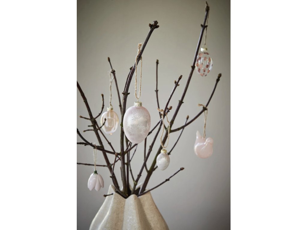 Půvabné vajíčko Esmelle z ústně foukaného skla pochází z dílny dánské značky Lene Bjerre. Hravě vám pomůže vytvořit ve vašem interiéru příjemnou velikonoční atmosféru. Vajíčko Esmelle v barvě Mauve Chalk doplňuje jemný vzor, který vytváří jedinečný a poutavý design. Pudrově růžový odstín perfektně ladí s pastelovými barvami, jež neodmyslitelně k Velikonocům patří.