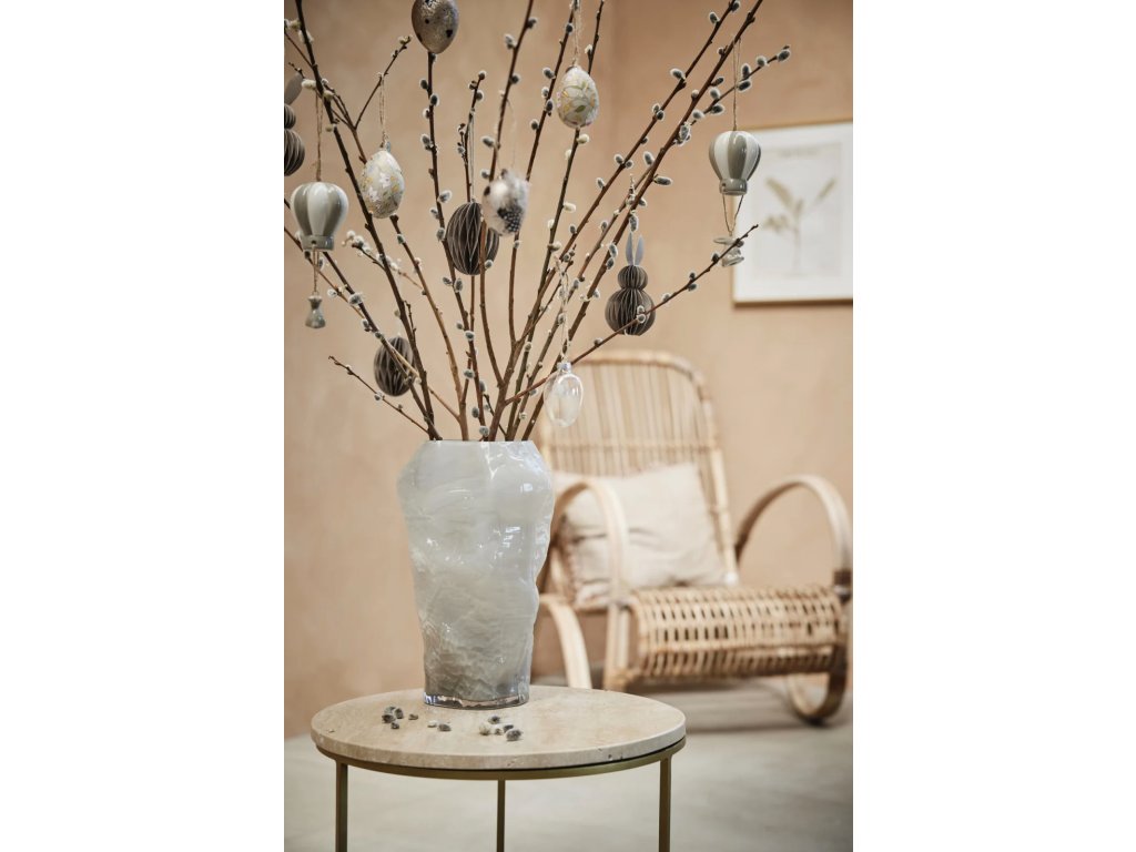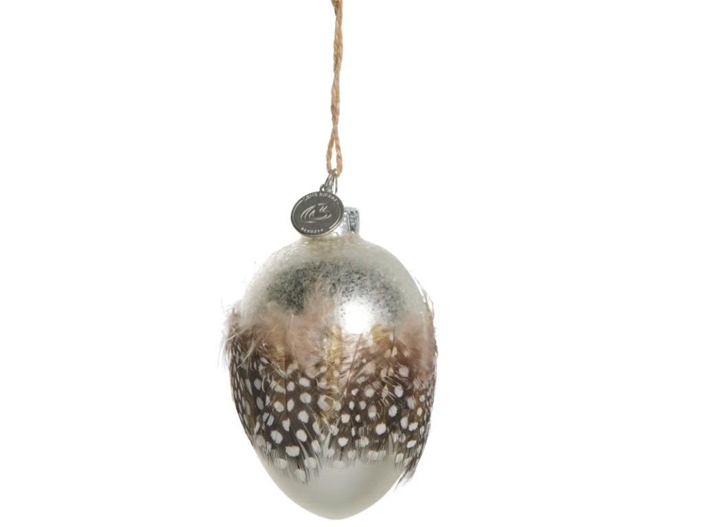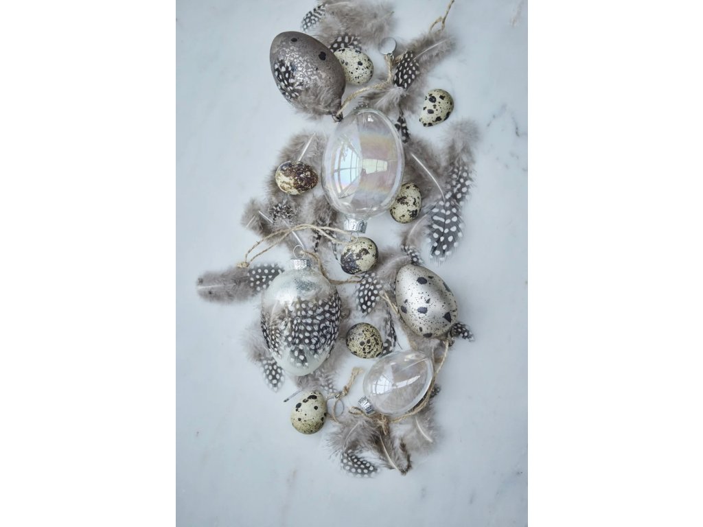 Půvabné vajíčko Felise z ústně foukaného skla pochází z dílny dánské značky Lene Bjerre. Hravě vám pomůže vytvořit ve vašem interiéru příjemnou velikonoční atmosféru. Vajíčko ve stříbrném odstínu zdobí křepelčí pírka, jež vytváří jedinečný a poutavý design neodmyslitelně patřící k Velikonocům.
