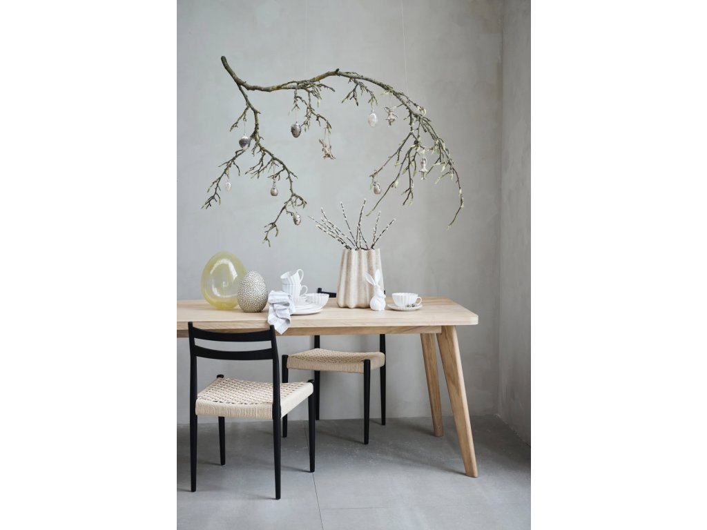 Vajíčko Felise je opatřeno očkem s jutovým provázkem, díky kterému ho snadno zavěsíte na vrbové větvičky ve váze. Očko můžete využít také k zavěšení do okna na hedvábnou stužku stejné barvy. Vajíčku to ale bude slušet i v dekorativní míse se stabilizovaným mechem, do kterého jej položíte.
