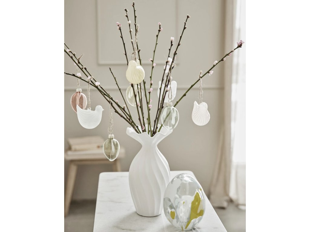 Skleněný ptáček Feya z ústně foukaného skla pochází z dílny dánské značky Lene Bjerre. Hravě vám pomůže vytvořit ve vašem interiéru příjemnou velikonoční atmosféru. Ptáček je vyroben z hladkého skla ve sněhově bílé barvě, která dodává dekoraci jarní a přírodou inspirovaný vzhled. Jemný odstín je ideální pro kombinaci s pastelovými barvami, jež neodmyslitelně k Velikonocům patří.