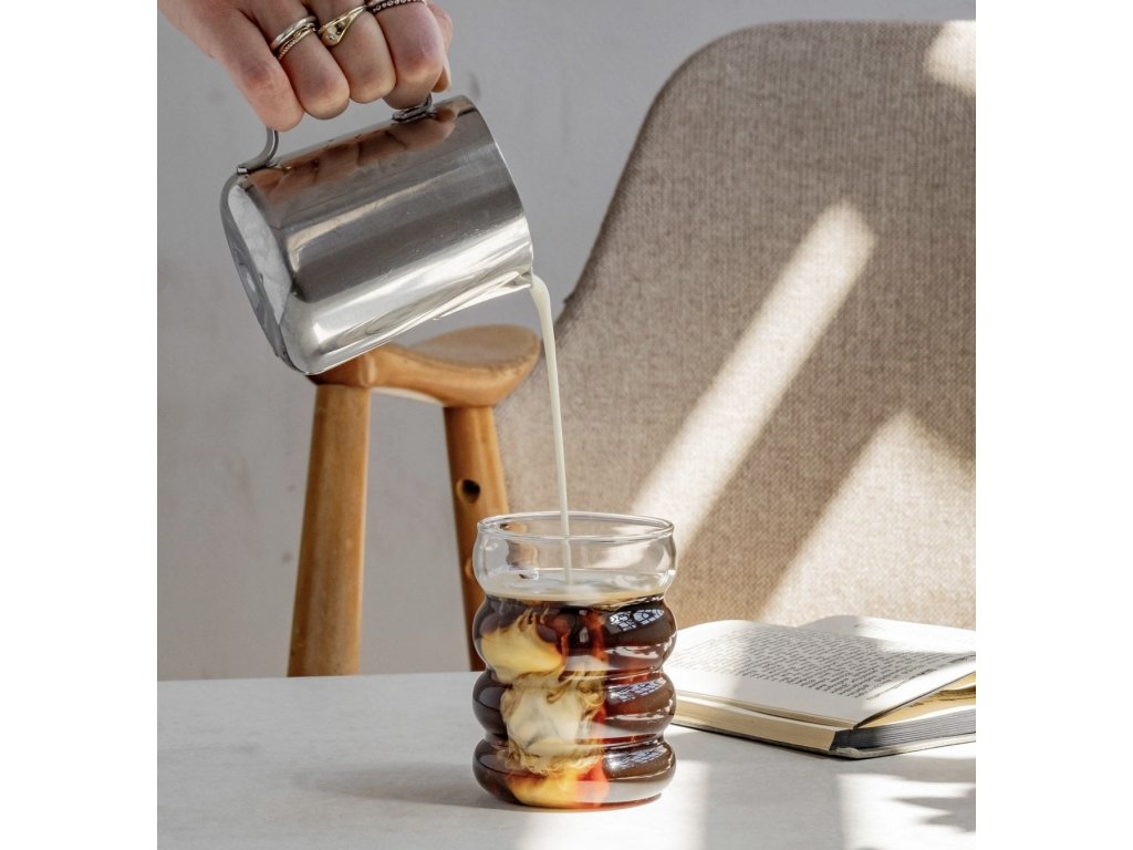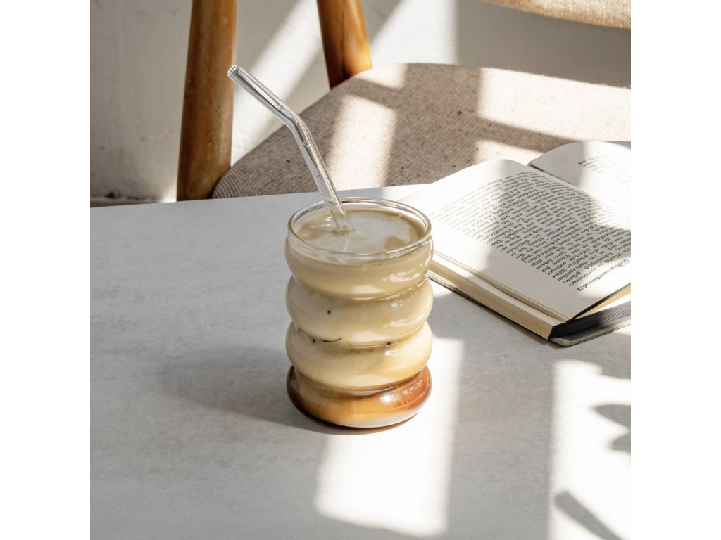 Díky svým vlnitým konturám se nejen nádherně vyjímá na stole, ale také skvěle padne do ruky – pití z ní se tak stává malým rituálem. Světlo se na jejím povrchu láme a dodává každému nápoji výjimečný vzhled, ať už jde o ledovou kávu, domácí limonádu, osvěžující gin tonic nebo teplý chai latte. Bubbles Blanko snadno zkombinujete se svým stávajícím nádobím. Její univerzální styl krásně zapadne do moderních, seversky laděných i bohémských domácností.