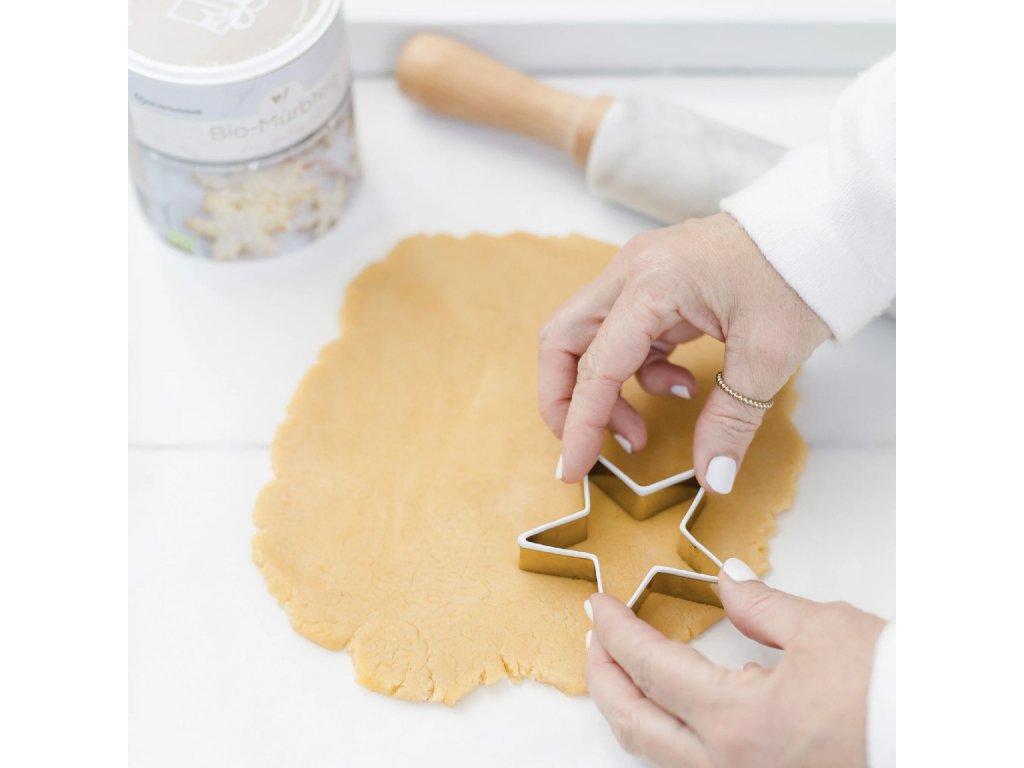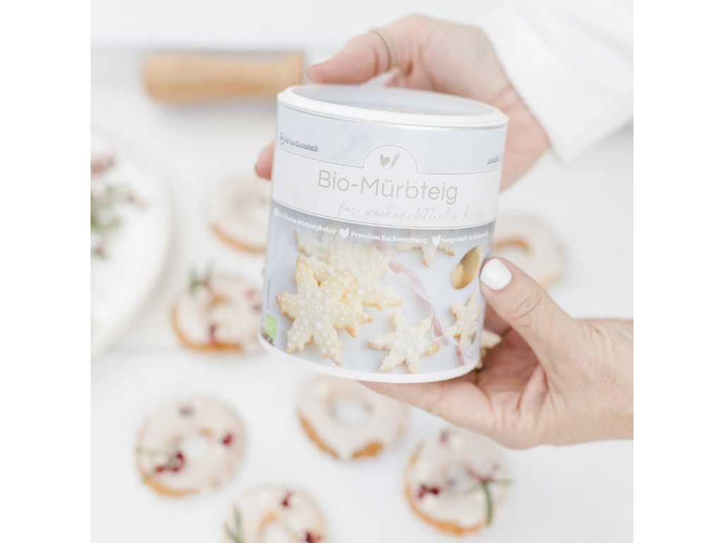 Každá dóza skrývá prémiovou směs z kontrolovaného ekologického zemědělství, bez geneticky modifikovaných surovin, barviv či konzervantů. Stačí přidat máslo a žloutek a pustit se do tvarování hvězdiček, srdíček a dalších oblíbených tvarů. Pečení je radostné a velmi snadné. Těsto se krásně zpracovává, nelepí a drží tvar i po upečení. Díky vanilkovému tónu a máslové chuti chutnají sušenky dokonale samy o sobě, nebo mohou být základem pro cukrovou polevu, marmeládu či ořechové zdobení. Ideální dárek pro každého, kdo miluje pečení a poctivé domácí dezerty.