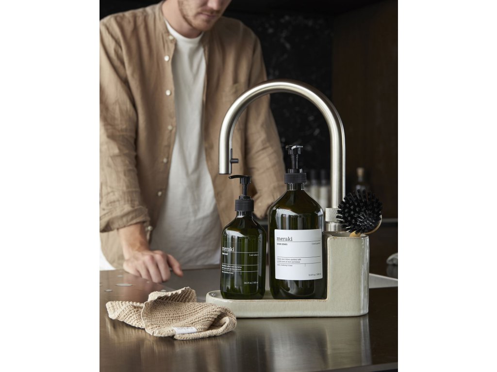 S tímto stojánkem na mycí prostředky máte vyřešenou otázku stylu i praktičnosti. Kameninový stojánek Datura s glazovaným povrchem pochází z dílny dánské značky Meraki. Jde o nepostradatelného kuchyňského pomocníka, který vám v okolí dřezu pomůže udržet pořádek. :-) Do stojánku umístíte nádobu s mycím prostředkem, kartáč i houbičku.